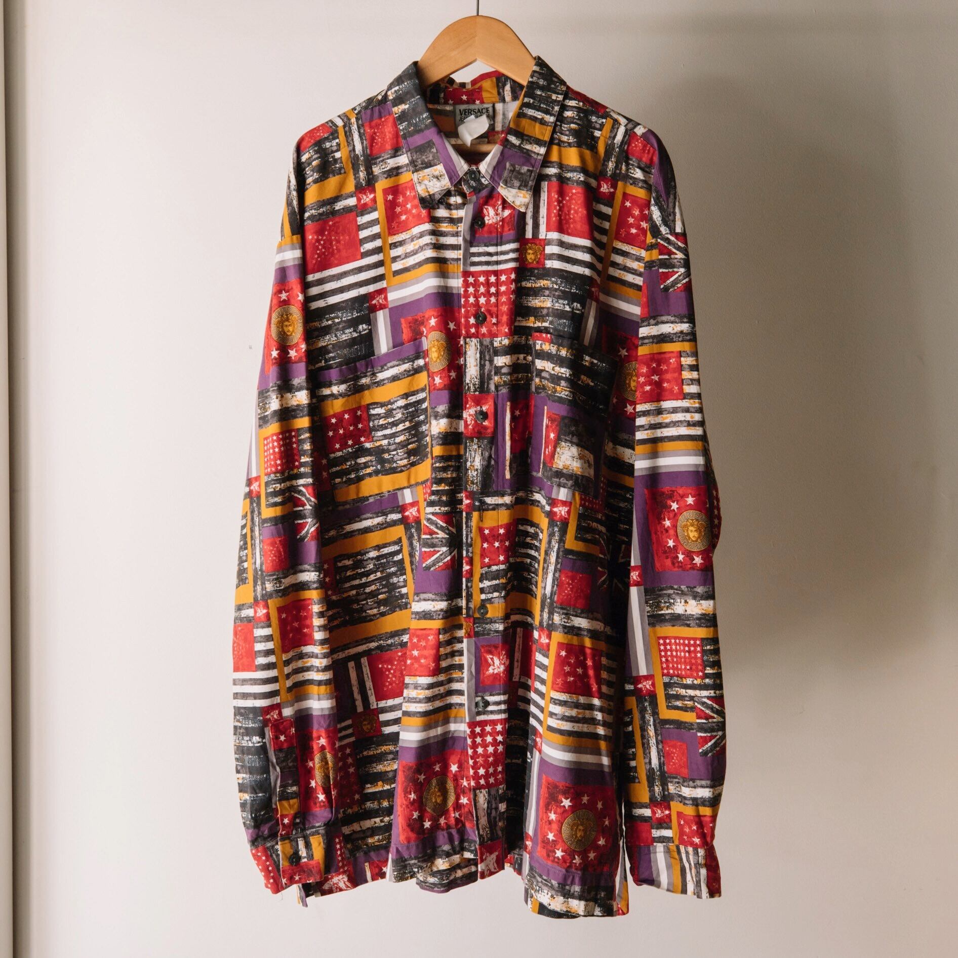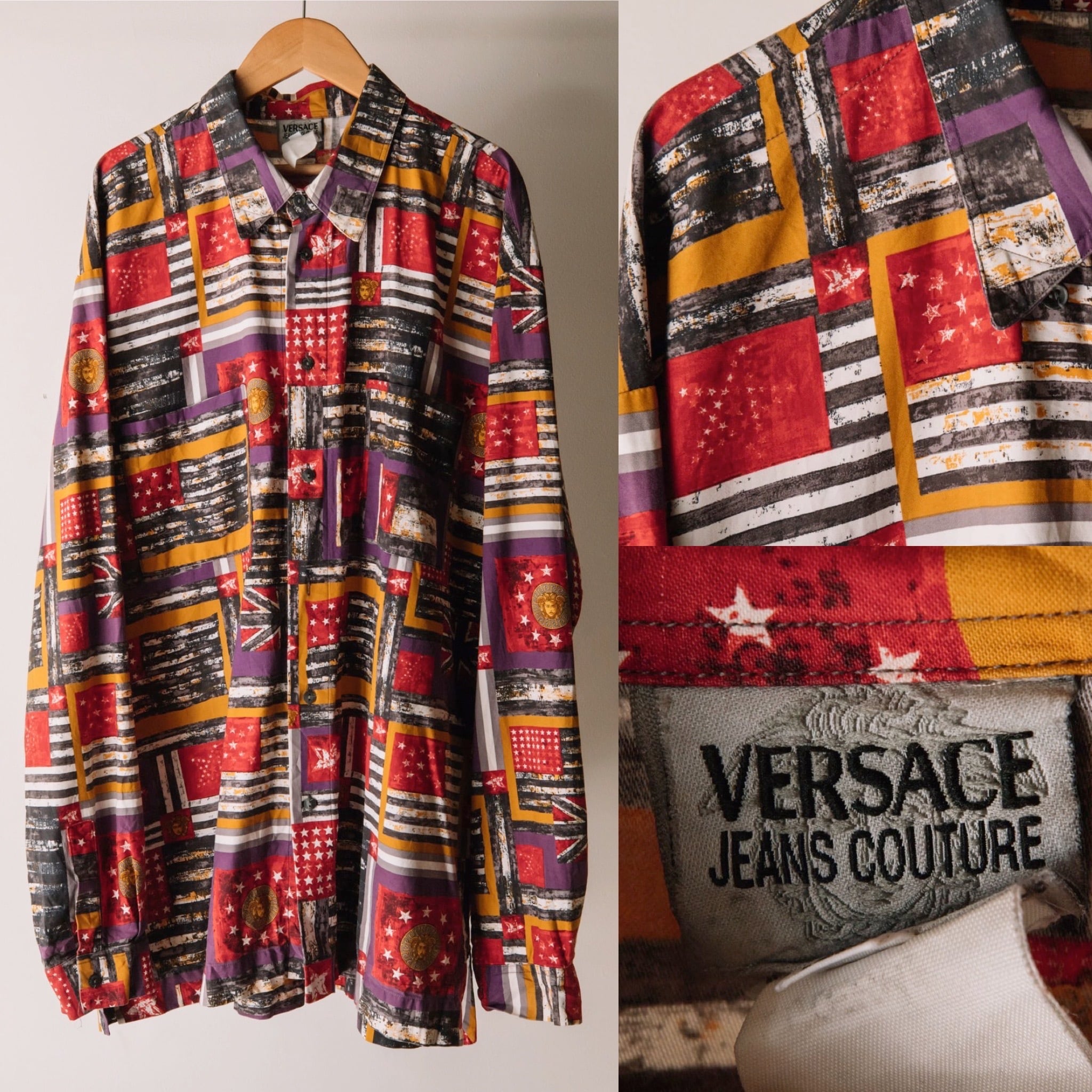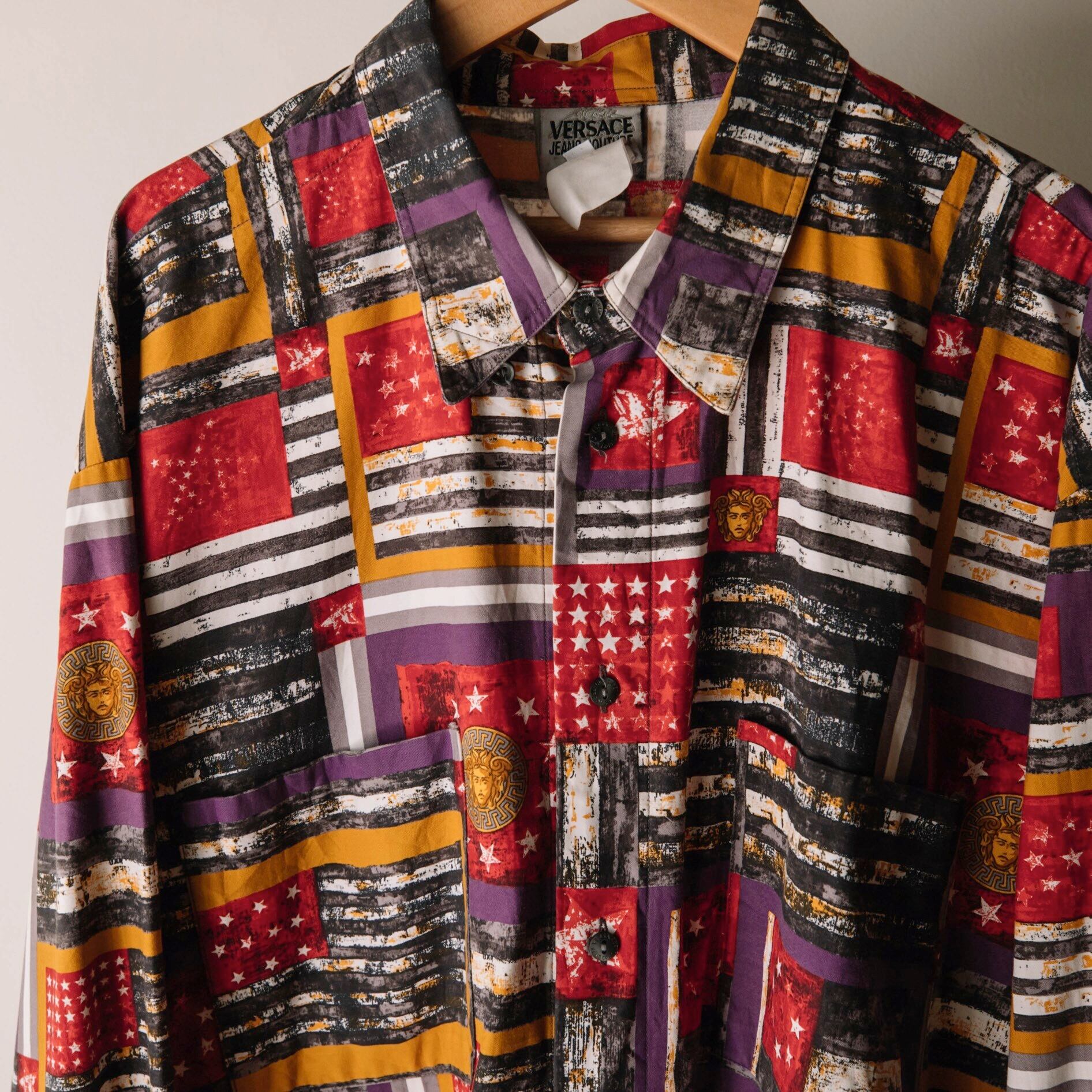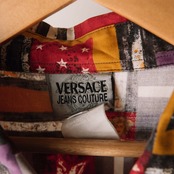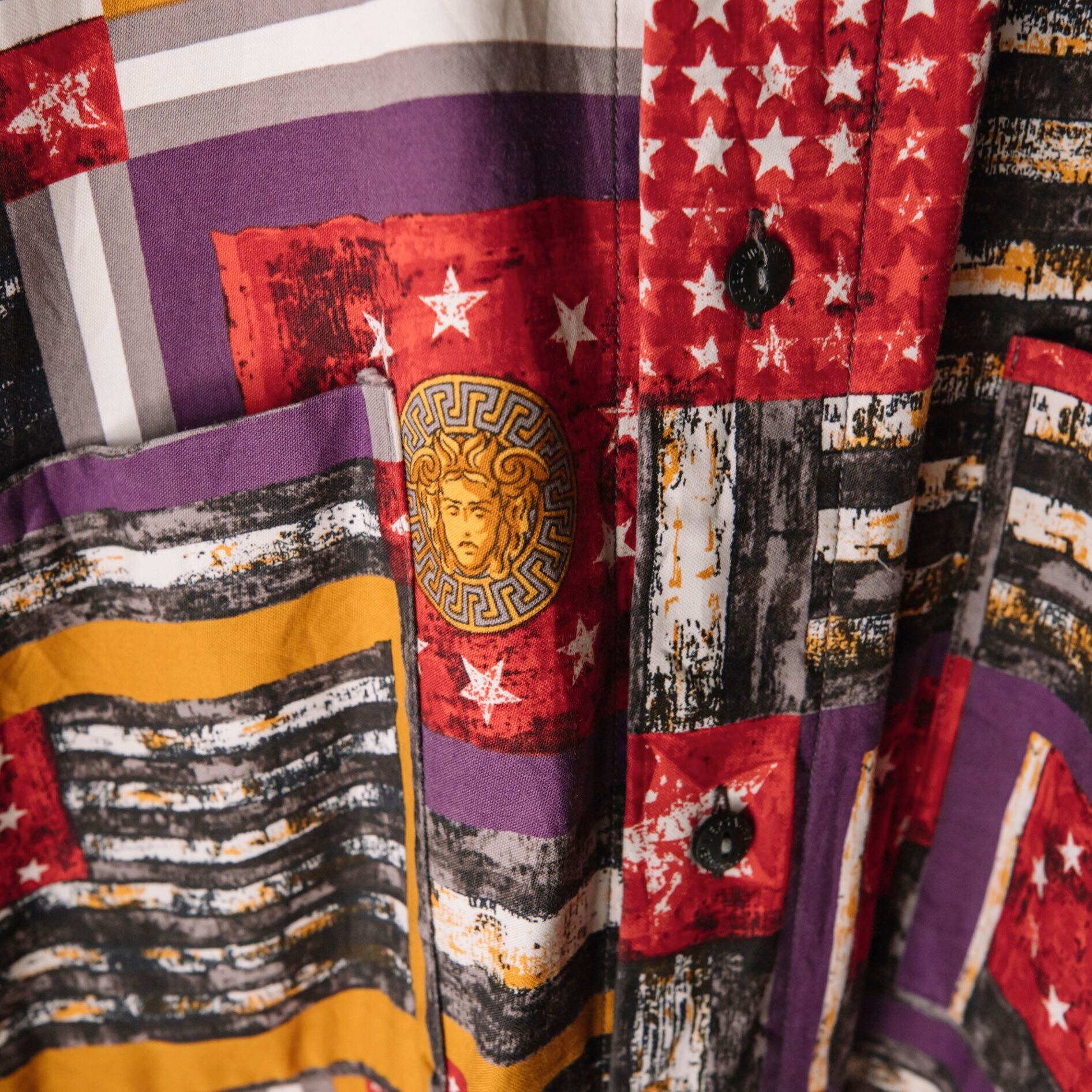 VERSACE JEANS COUTURE(ヴェルサーチ ジーンズクチュール)の歴代星条旗モチーフ総柄シャツ。星条旗の星はアメリカの州の数を表しており、古ければ古いほど星の数が少ないデザインとなります。