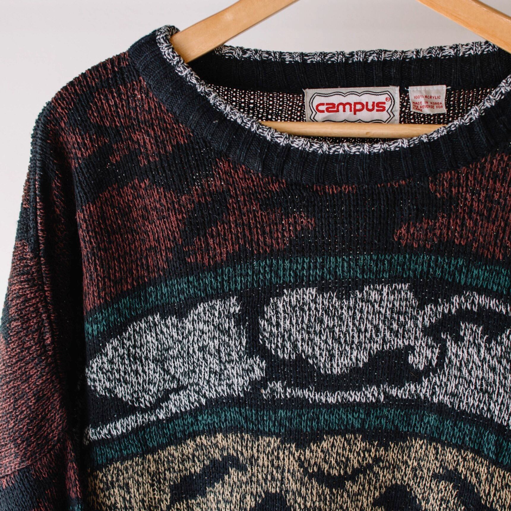 80's Campus 総柄アクリルニットセーター ビッグサイズ 【1009A13】