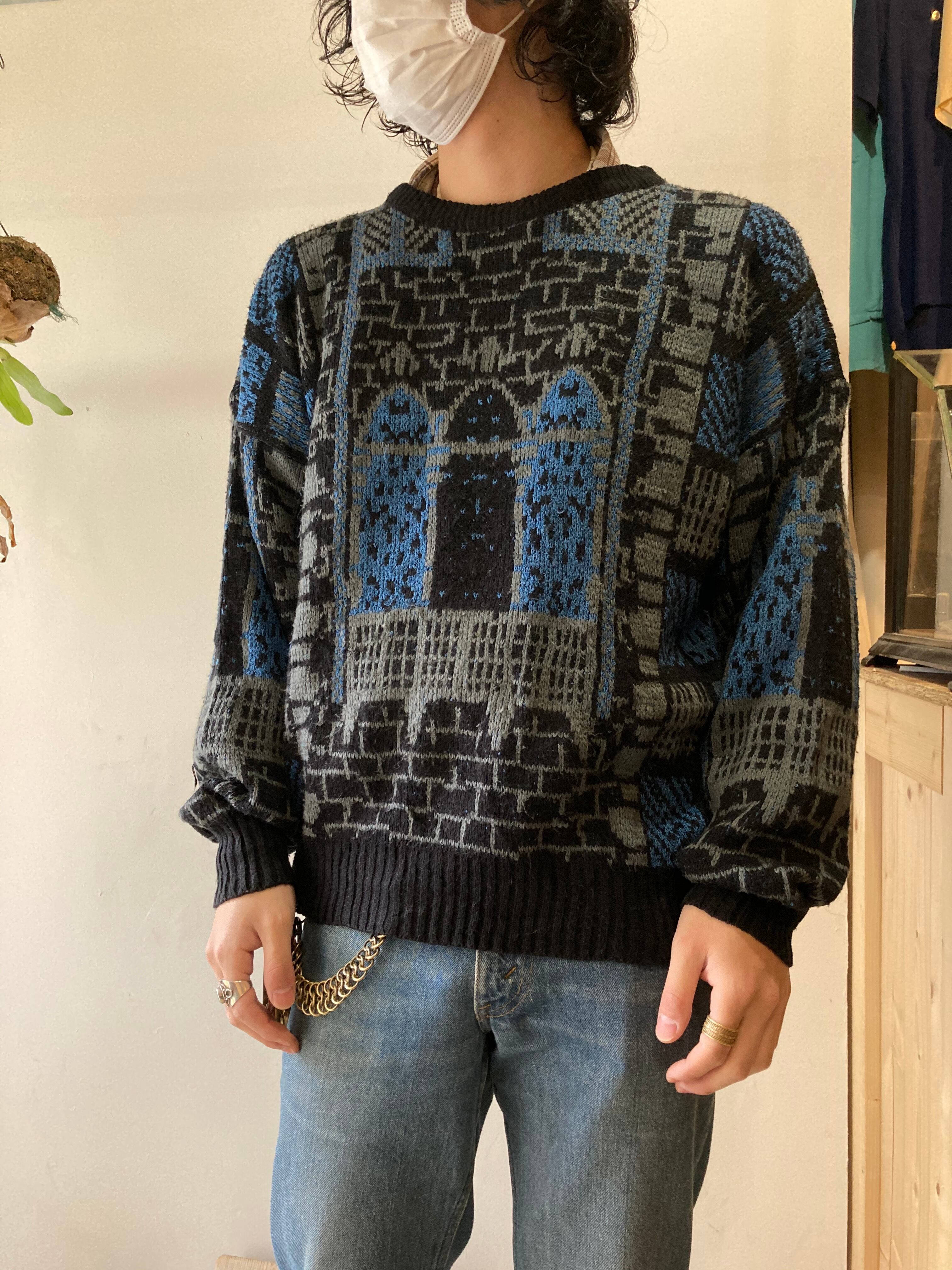 80から90年代頃にありそうな総柄ニット。