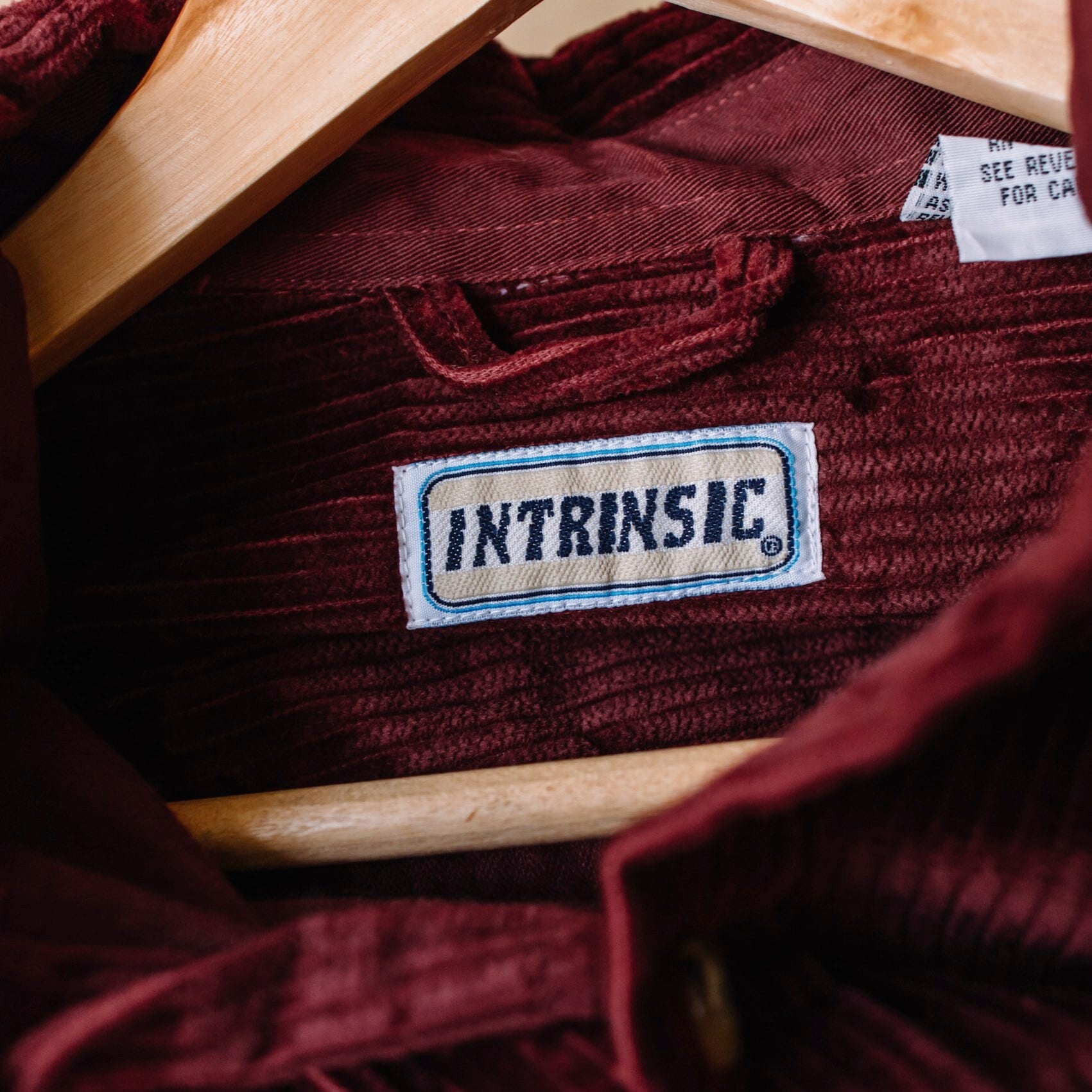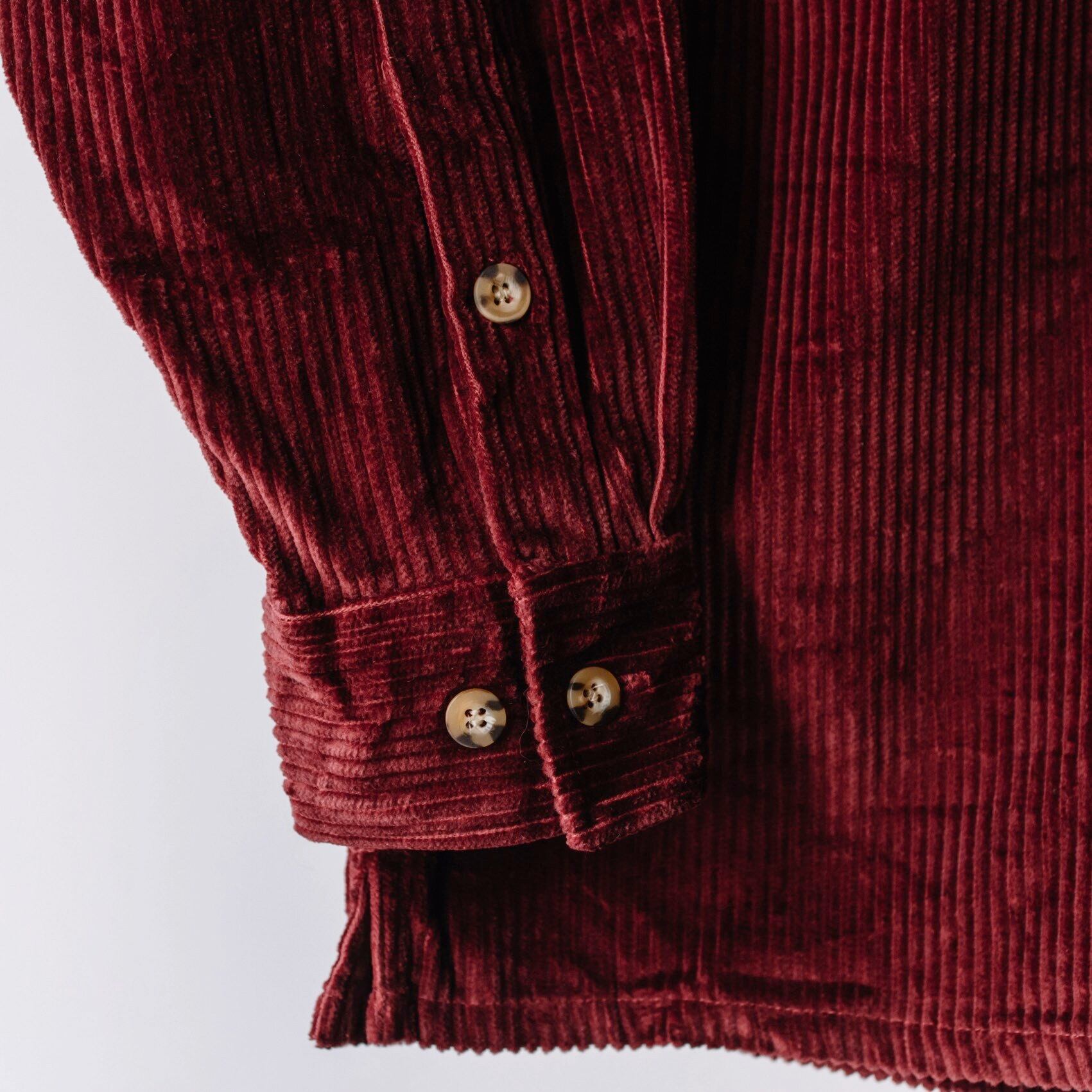 ボルドー色の太畝(ふとうね)コーデュロイ生地を使ったシャツ。