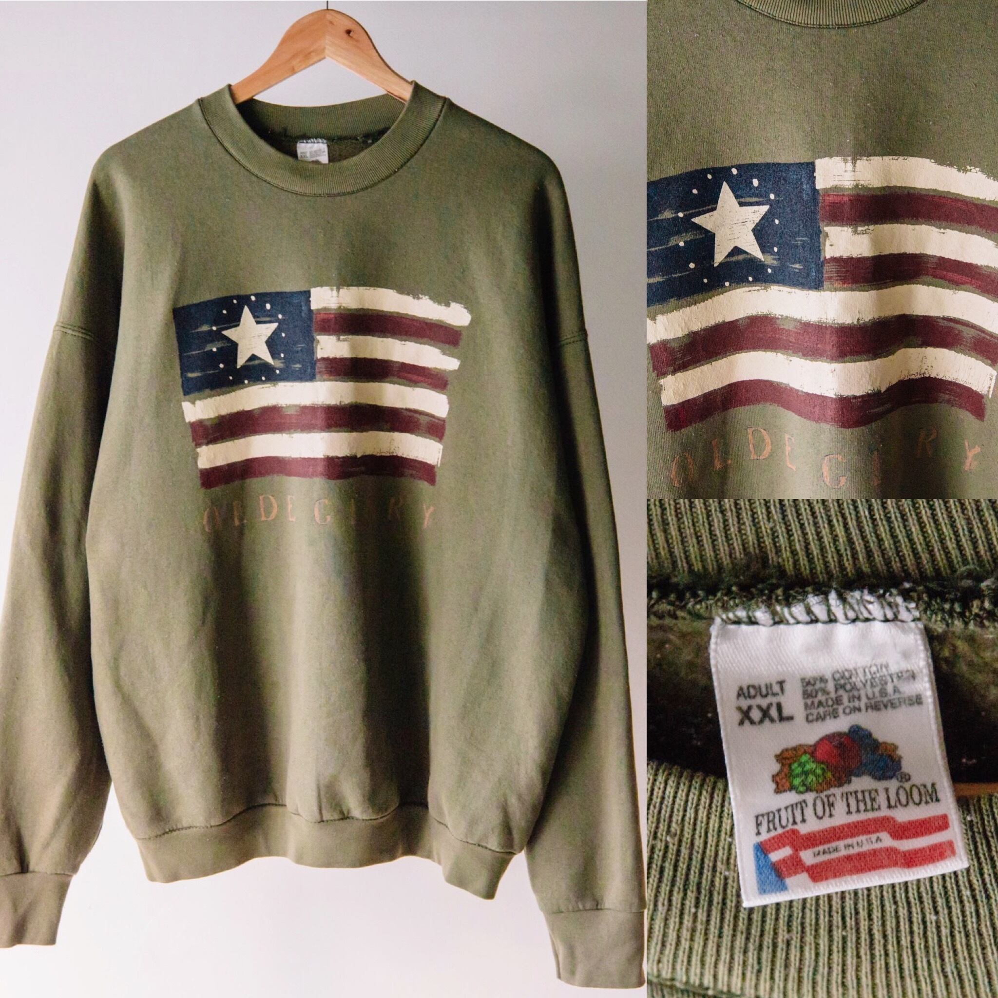 90's モスグリーン 星条旗スウェット made in USA【1009A27】