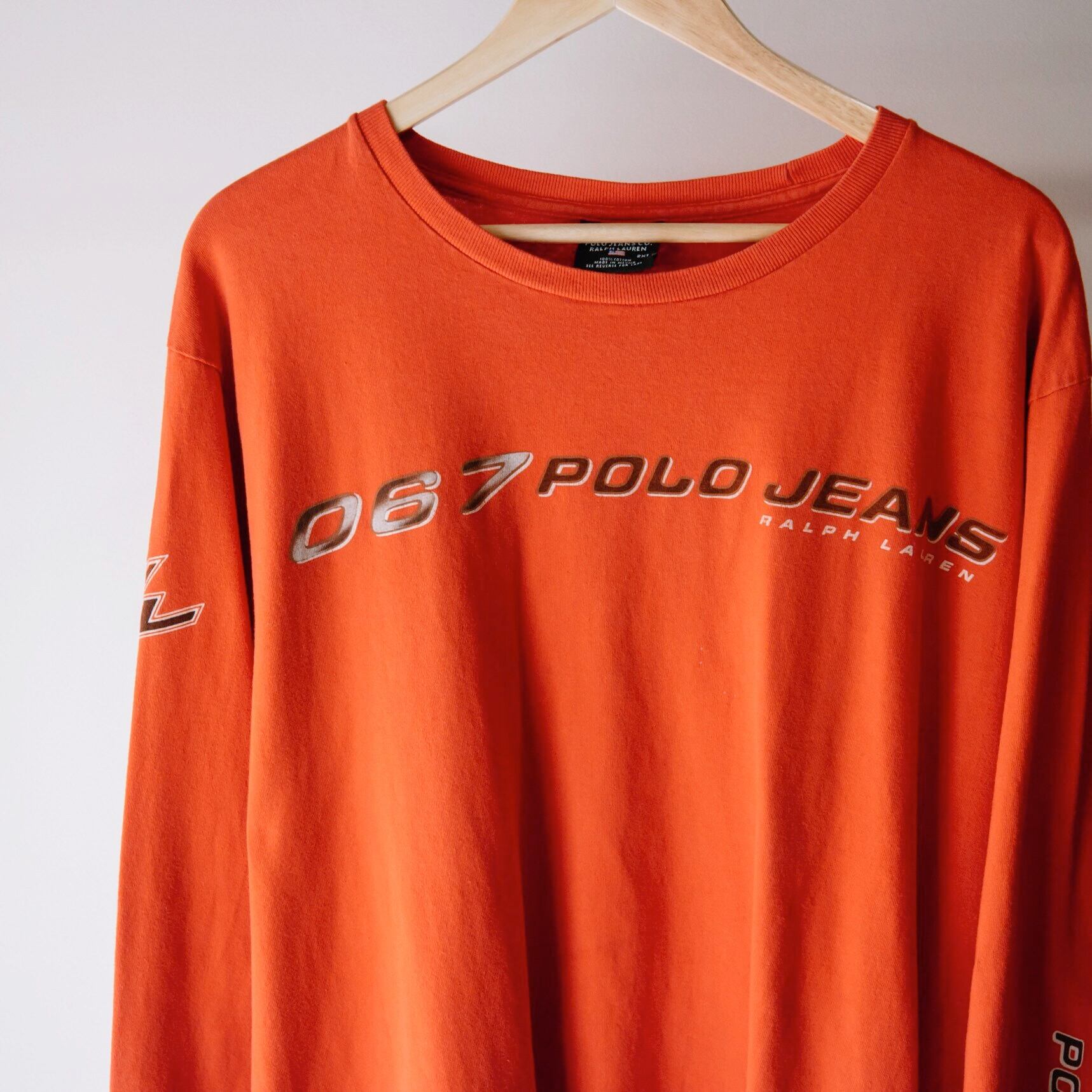 【ネコポス対応】POLO JEANS オレンジ袖プリント L/S tee 【1009A35】