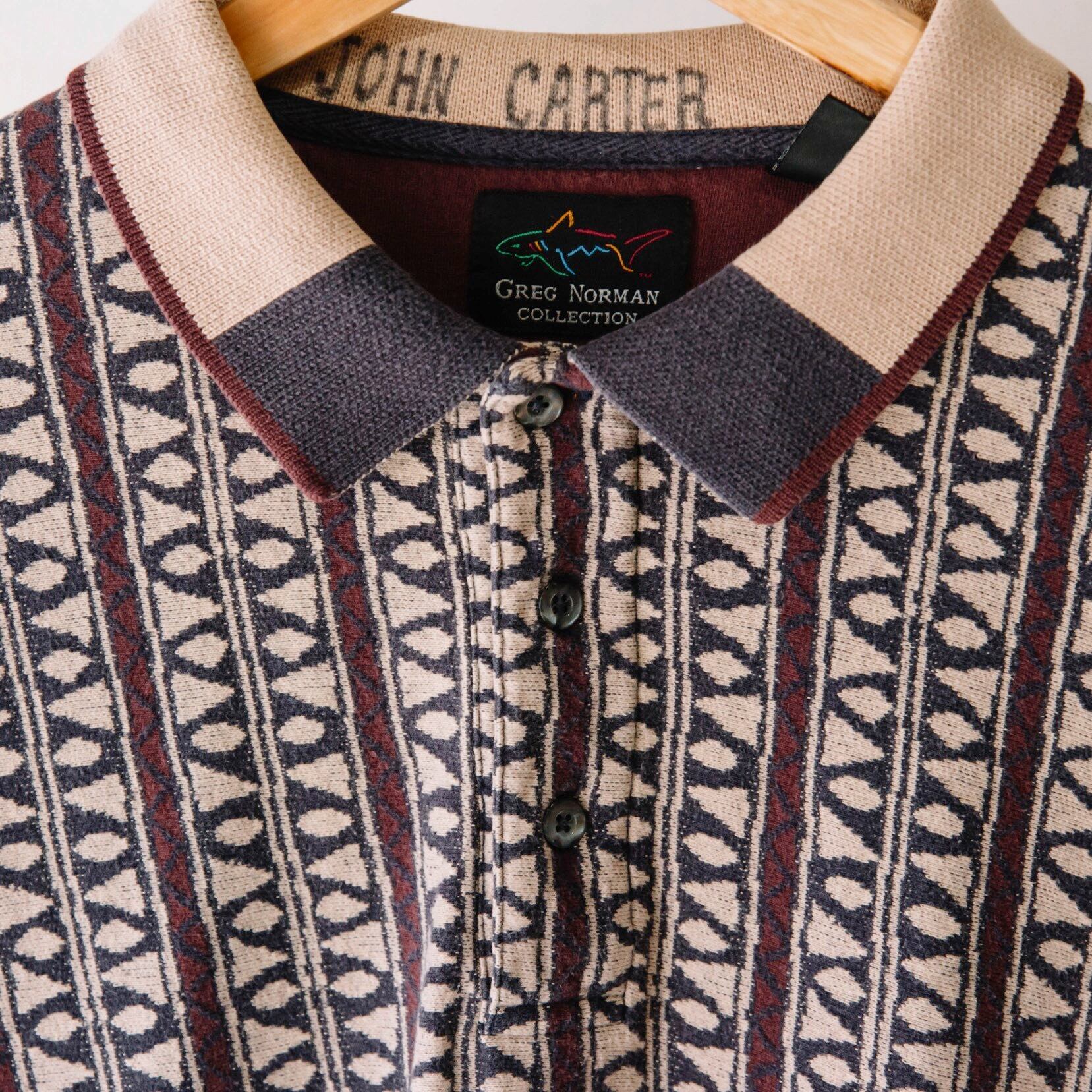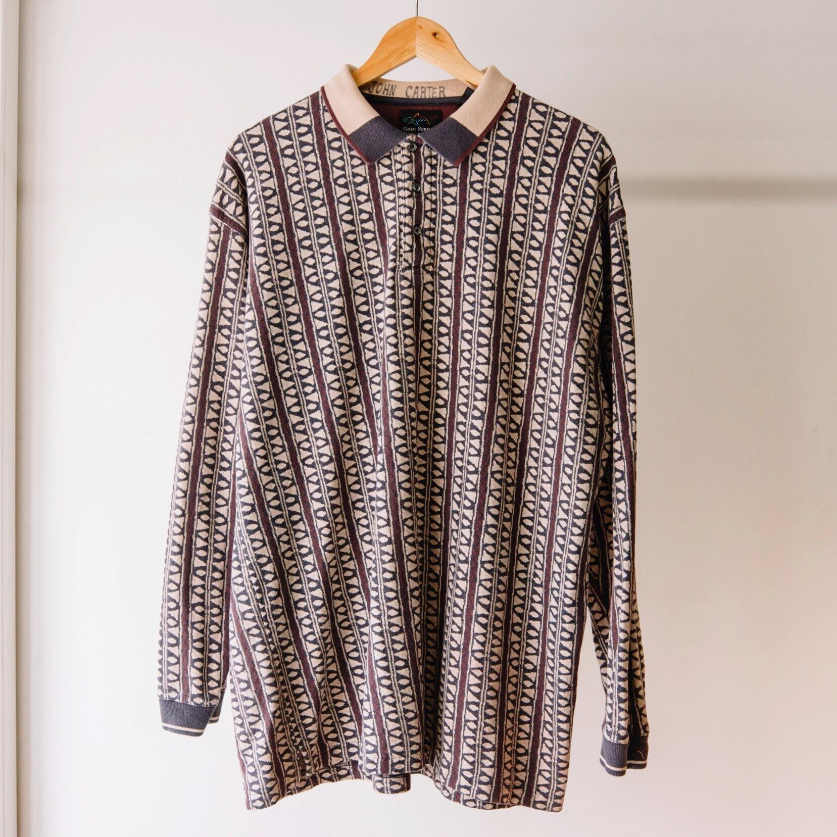 Design 総柄 L/S ポロシャツ 【1009A39】