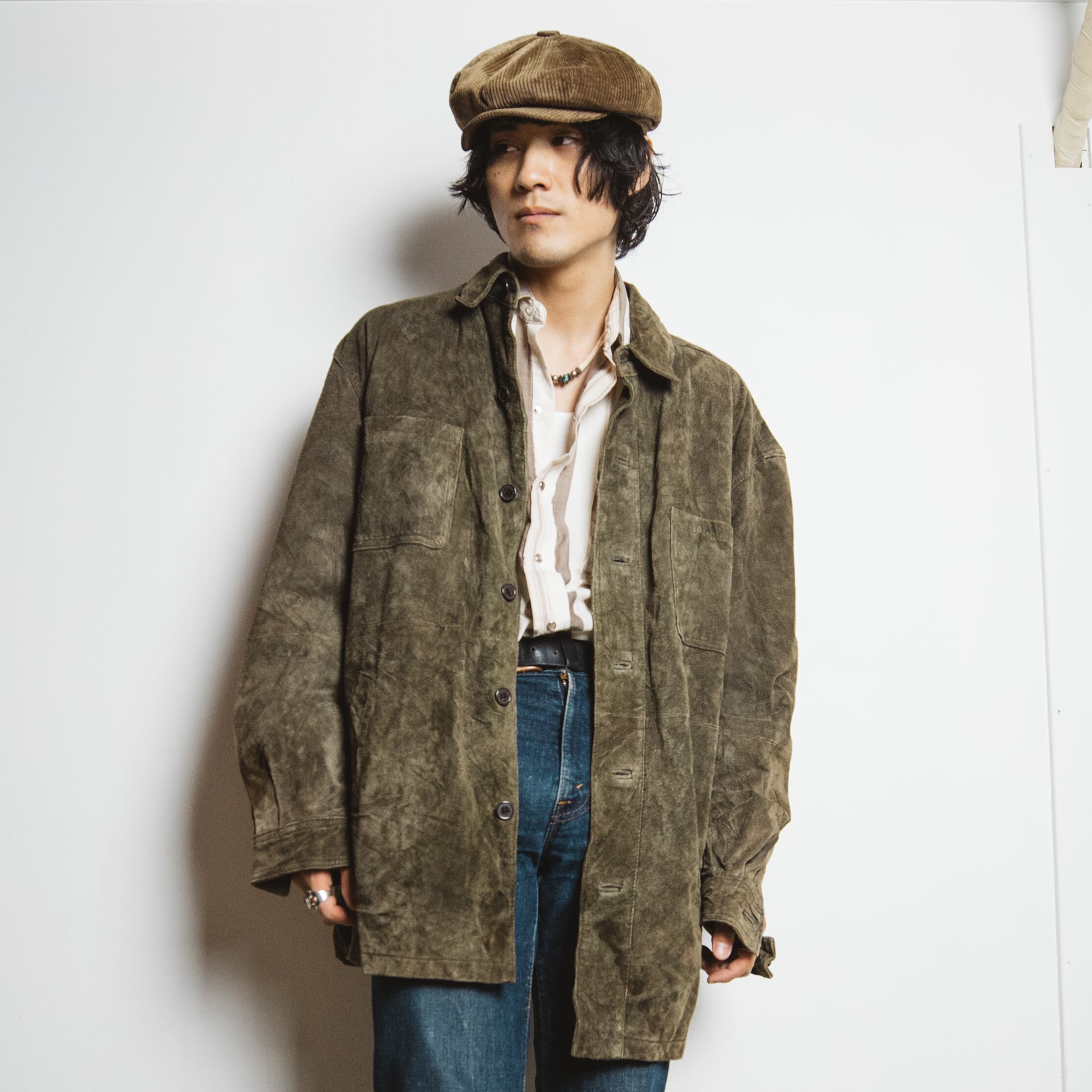 スエードレザーをふんだんに使った雰囲気のあるシャツジャケットです。