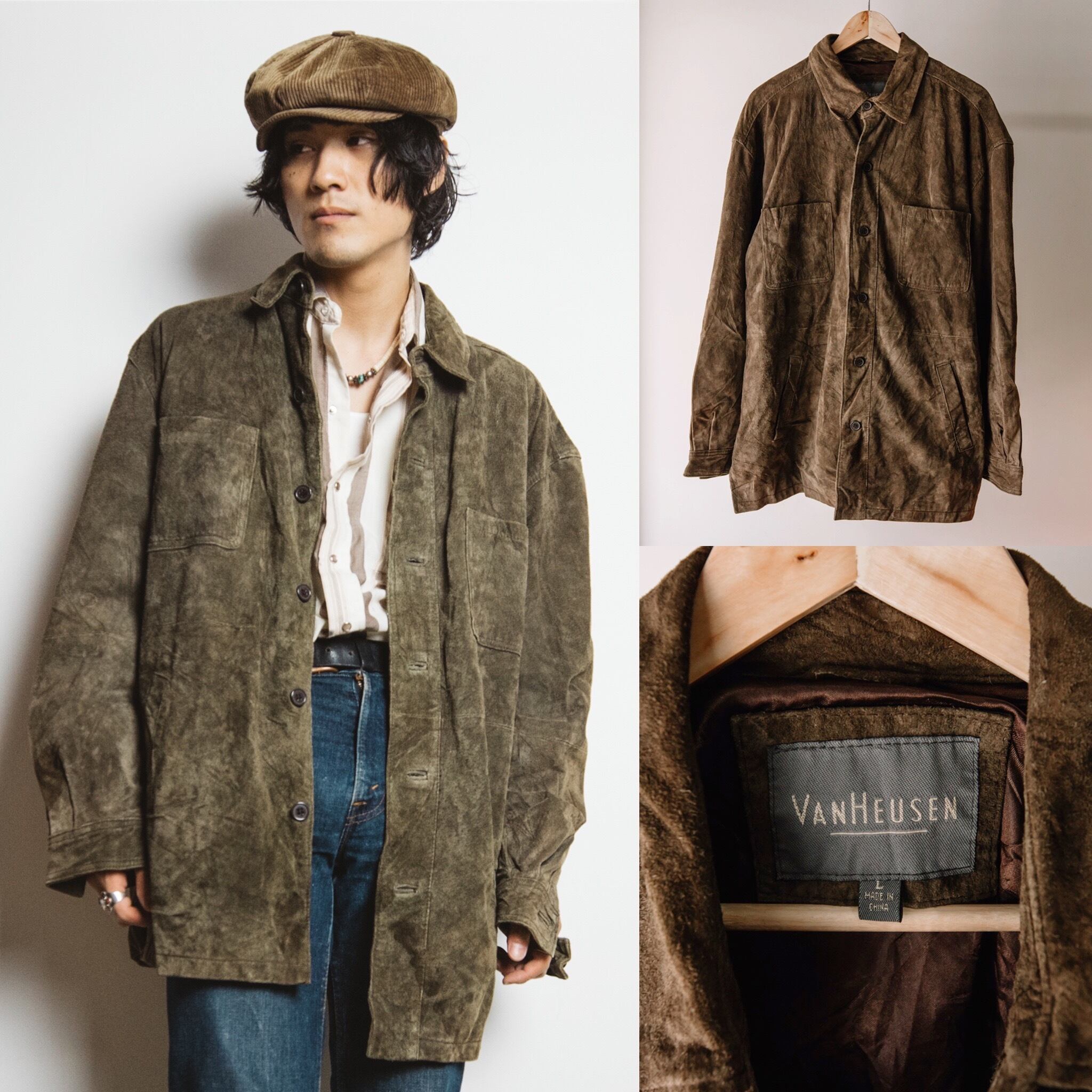 VANHEUSEN スエードレザーシャツジャケット チャコール【1009T45】