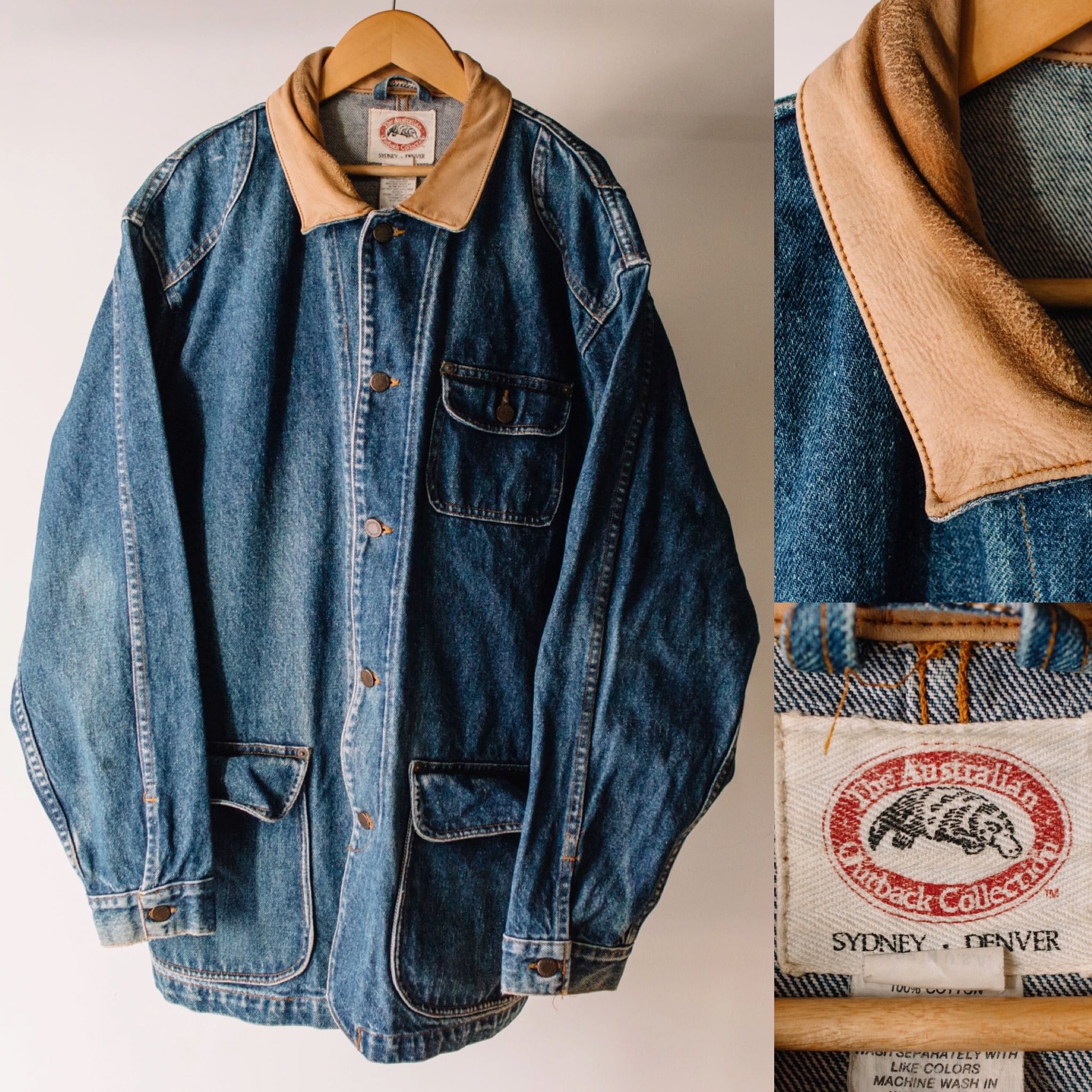 襟がレザー切り替えとなっているデニムカバーオールジャケットです!