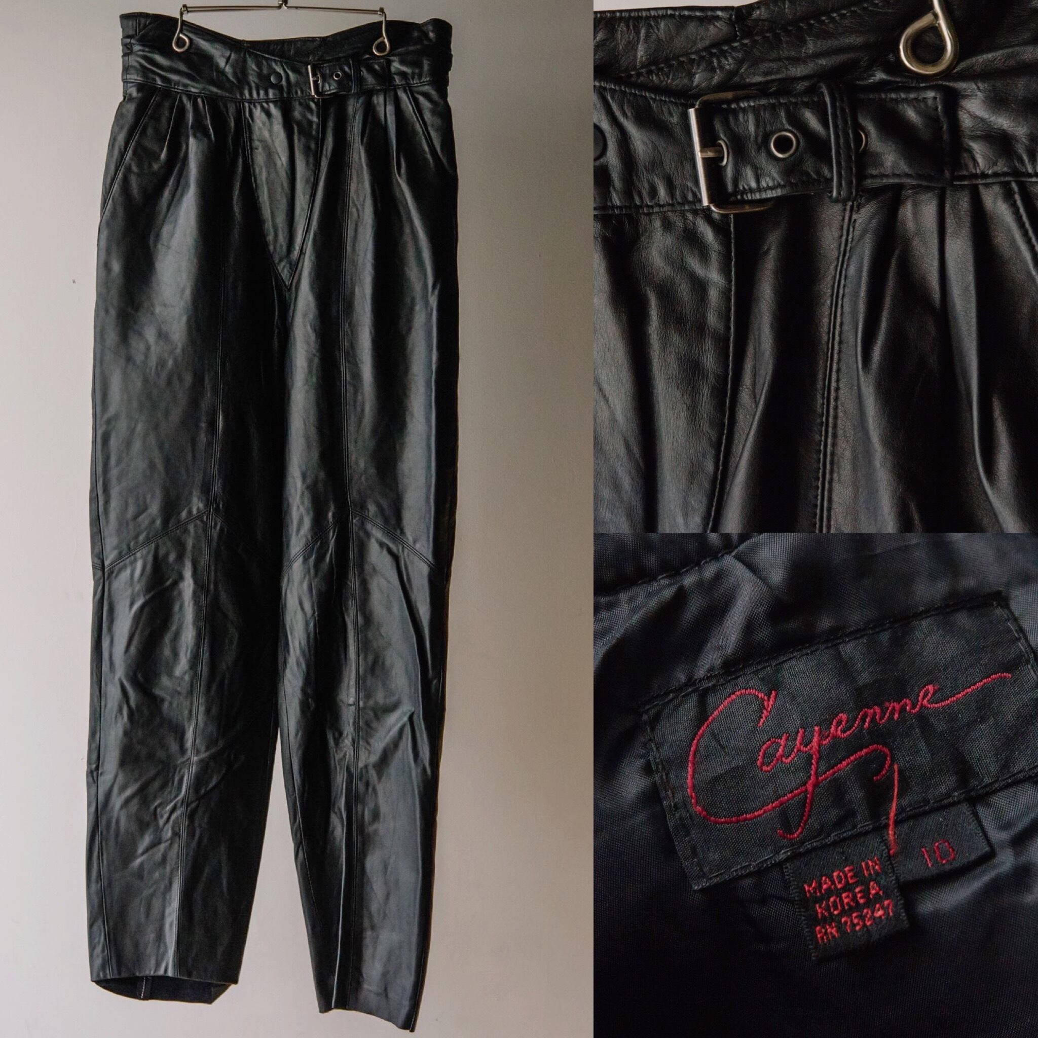 80's~ブラックレザーテーパードパンツ 【1016T64】