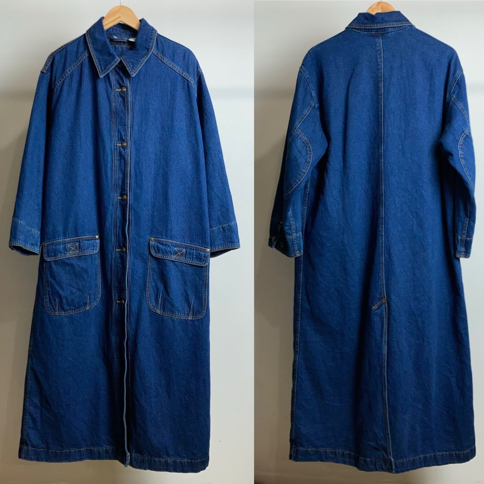 濃紺のロング丈デニムコートです。デニム生地のコートは玉数が少ないのでまとまって入荷した今がチャンスです!