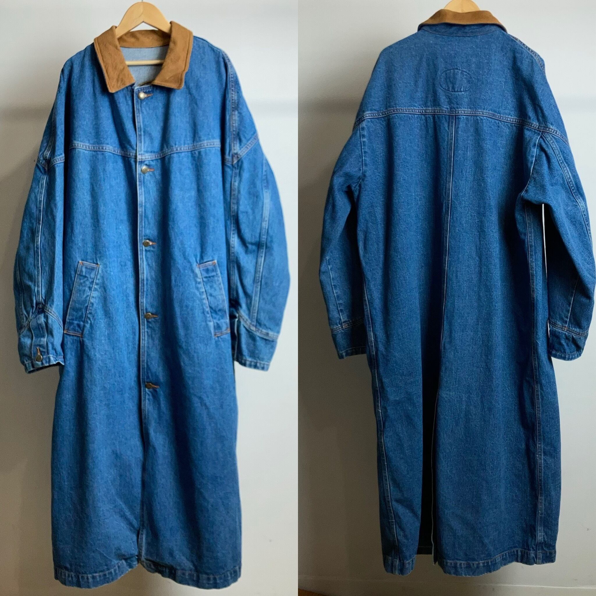 【スペシャルデニムWeek】デニムロングコート 襟レザー切り替え【1023T34】