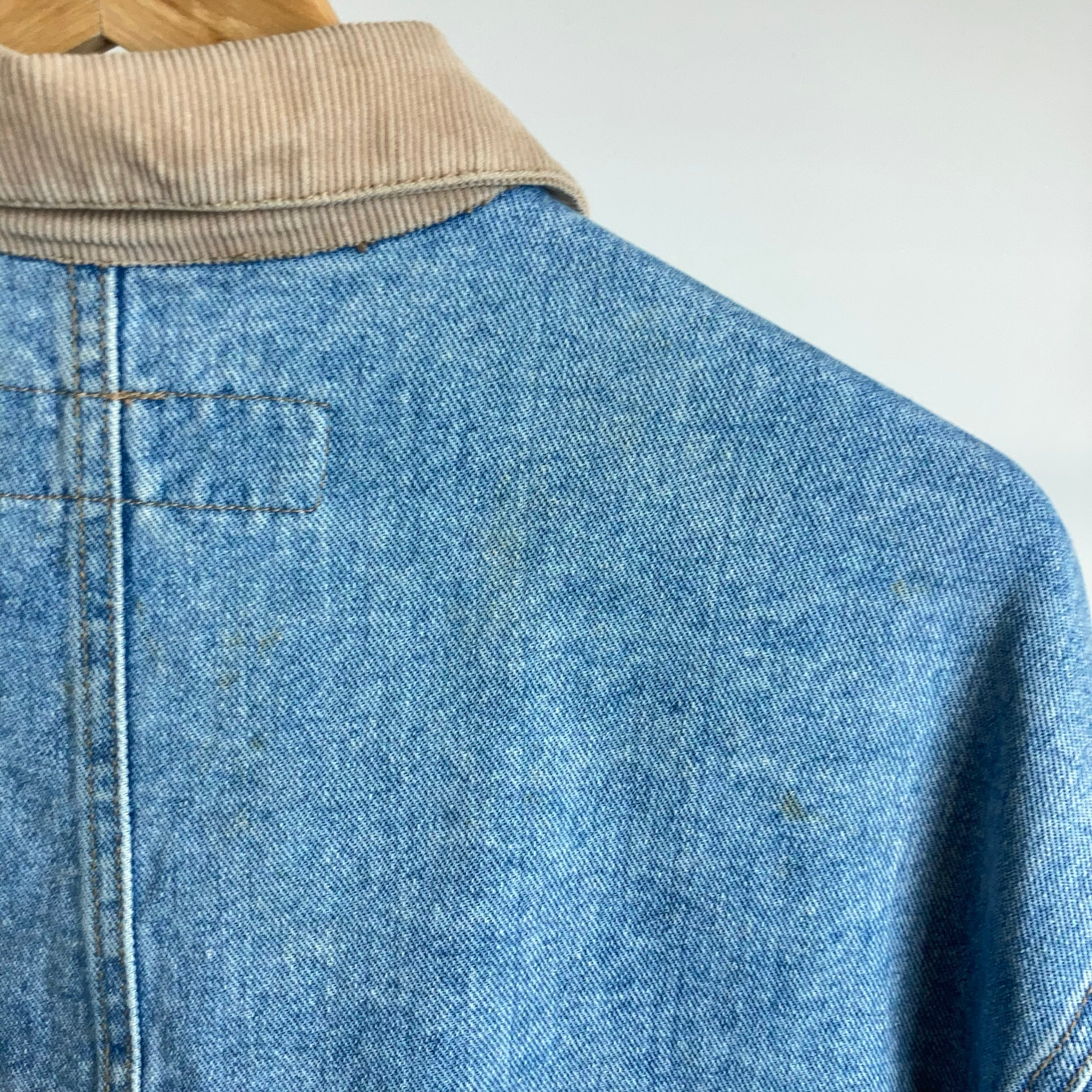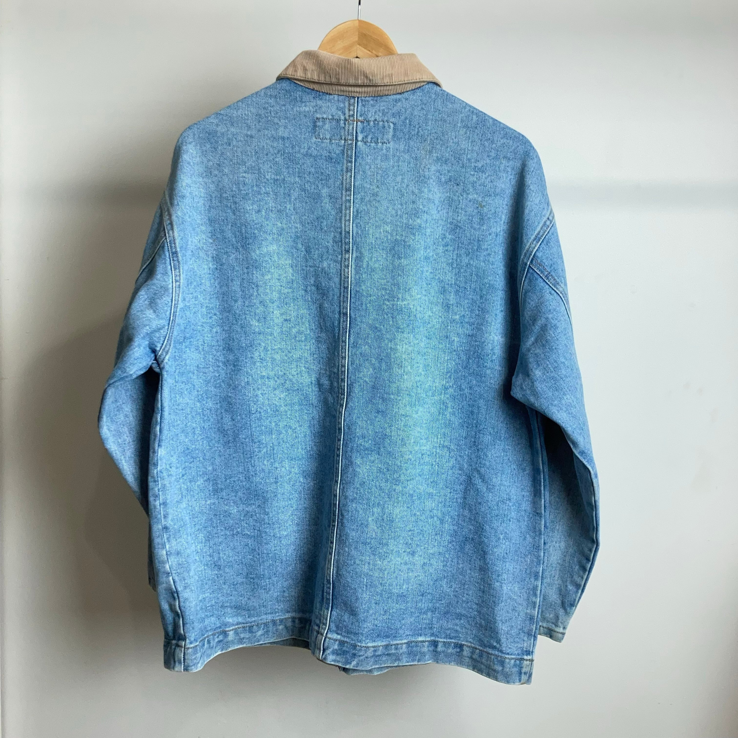 【スペシャルデニムWeek】デニムカバーオールジャケット 襟コーデュロイ切り替え【1023T42】