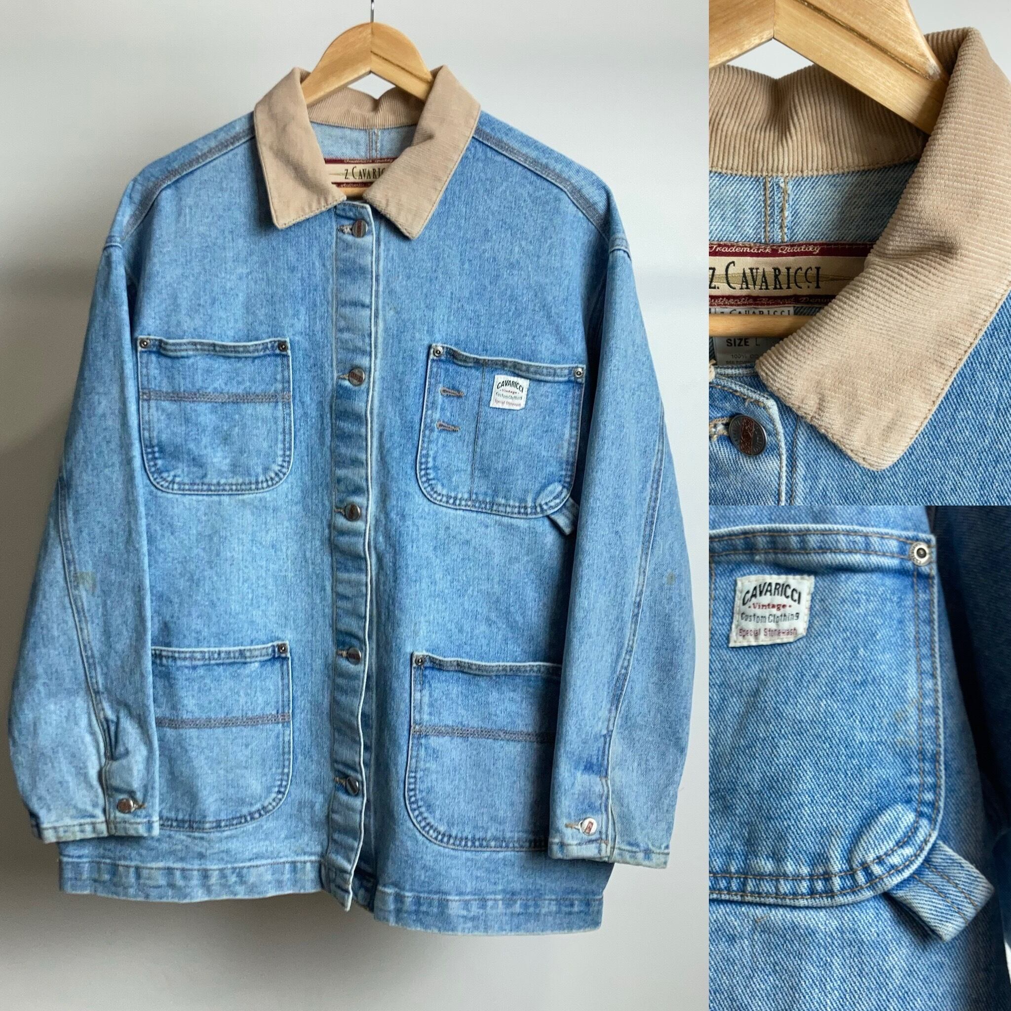 襟がコーデュロイ切り替え仕様のデニムカバーオールです。