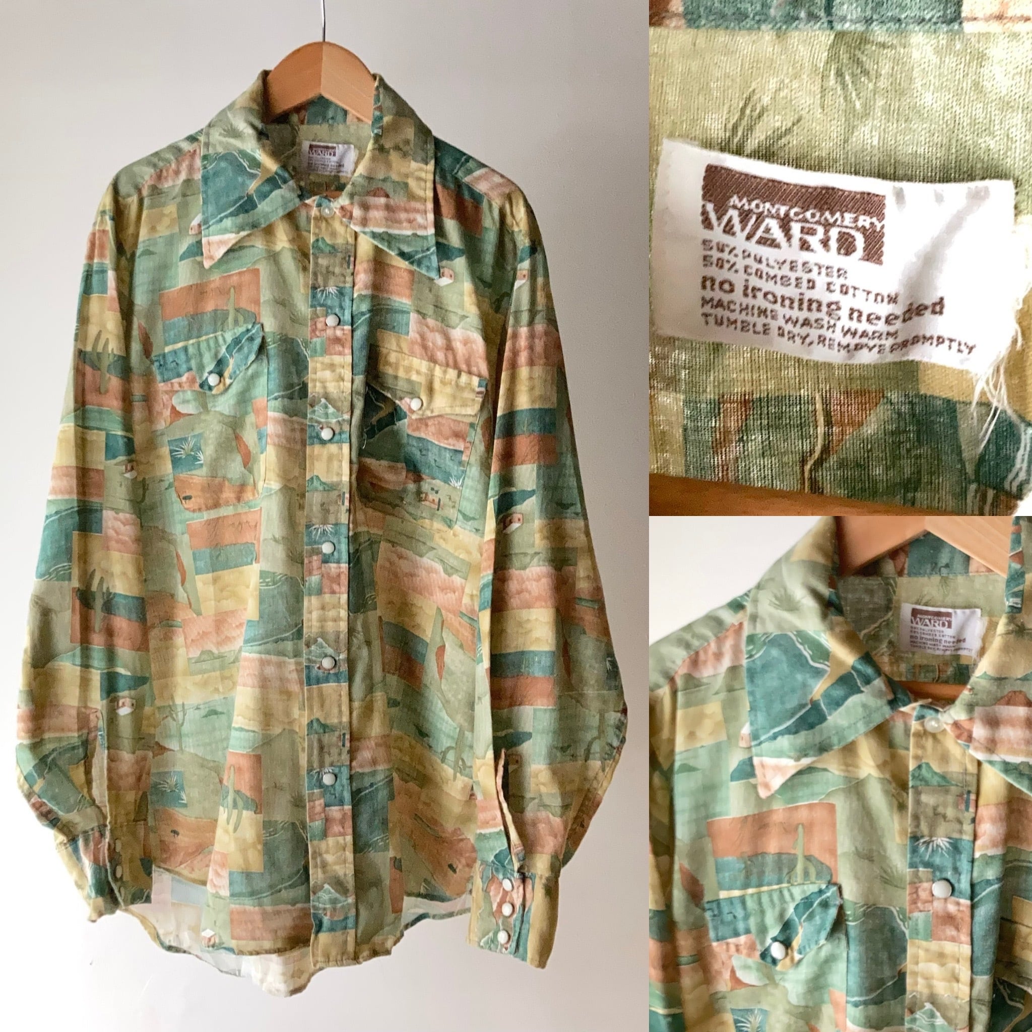 70s Montgomery ward ウエスタン総柄シャツ【1023T74】