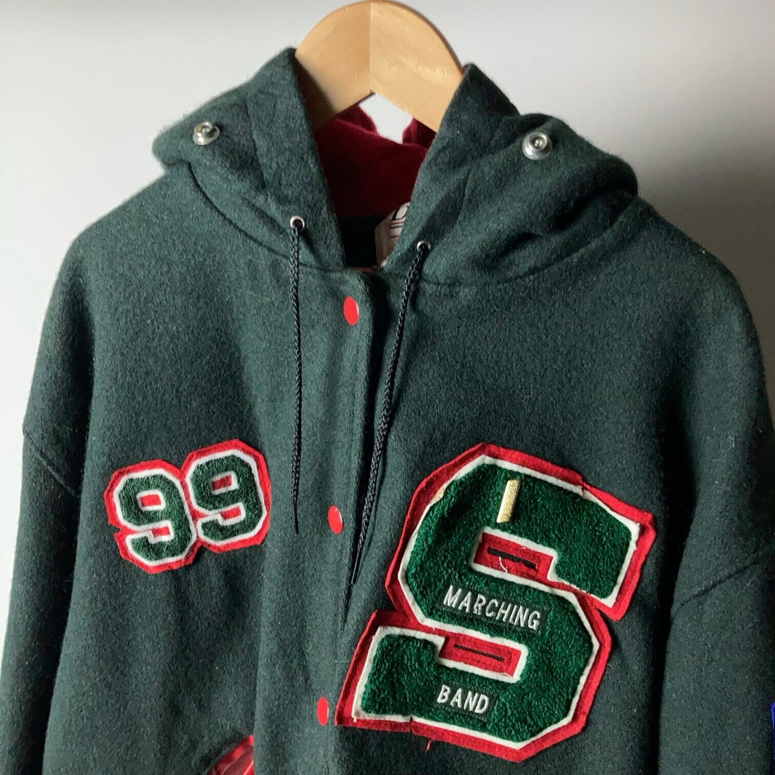 フード部分には縦にジッパーが付いており、ジッパーを開けるとセーラーカラーになるという変形型のスタジャンです。90年代頃のオールドスタジャン。ワッペンもとても可愛い!