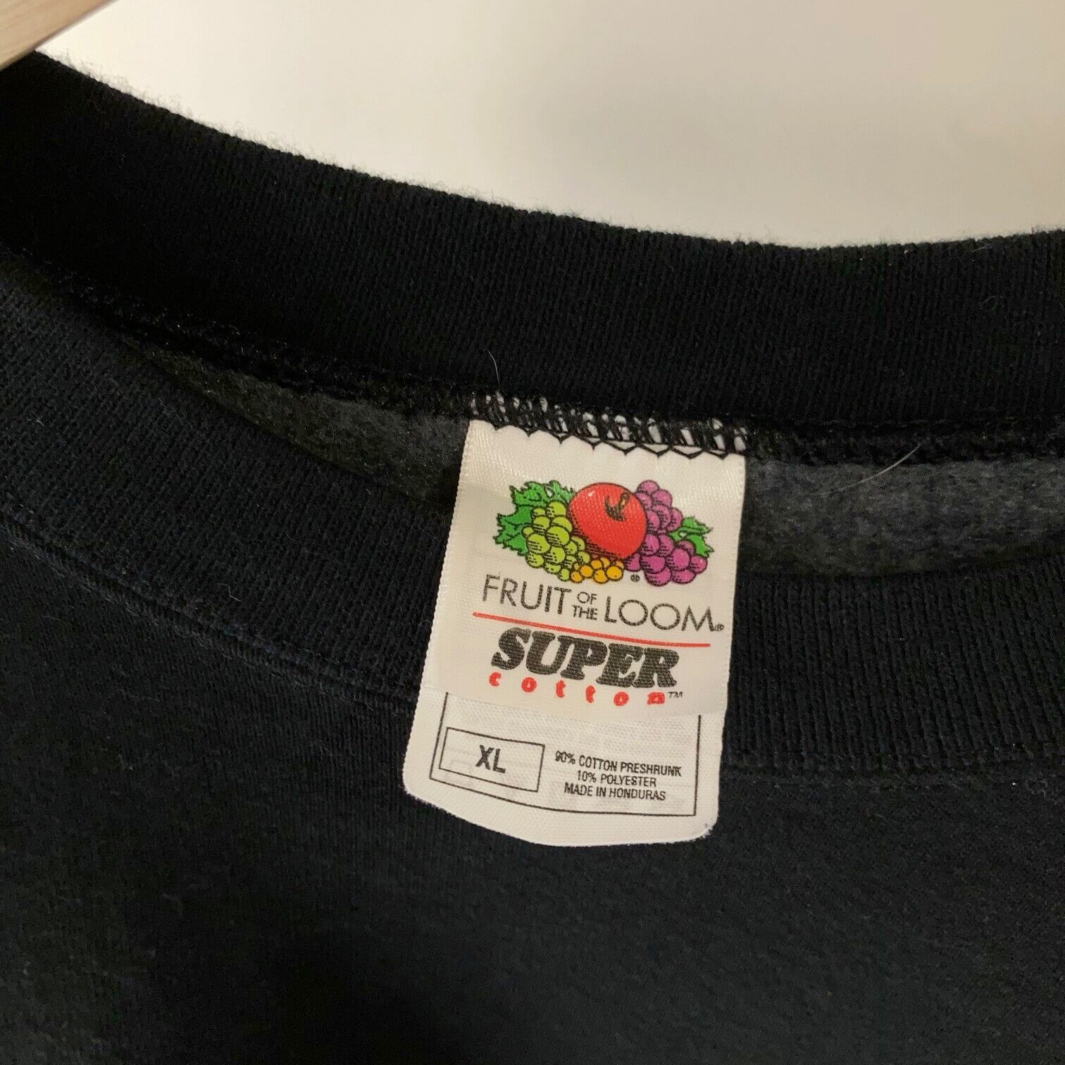 胸にワンポイント刺繍が入った黒スウェット。
