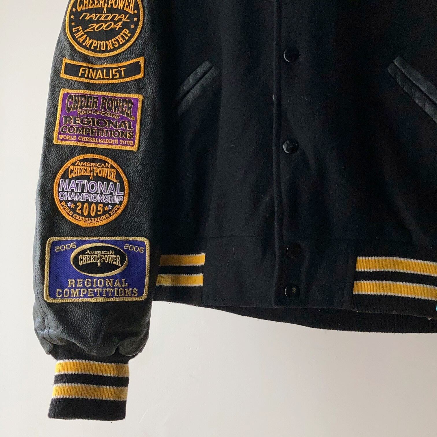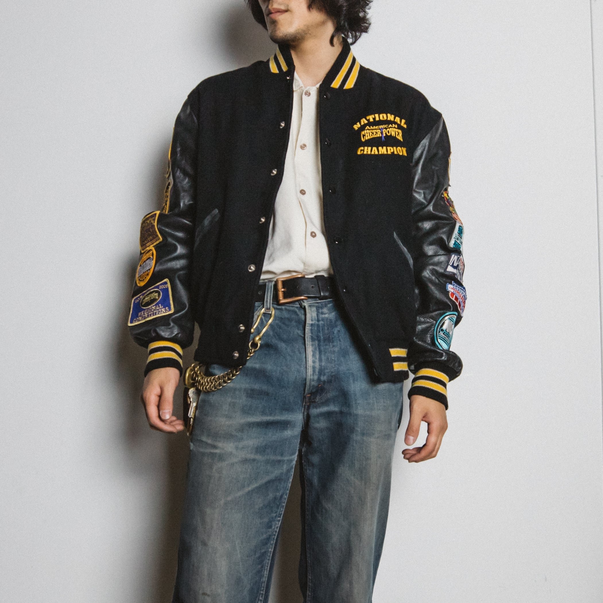 袖と背中に大量のワッペンと刺繍が入った超豪華なスタジャン。