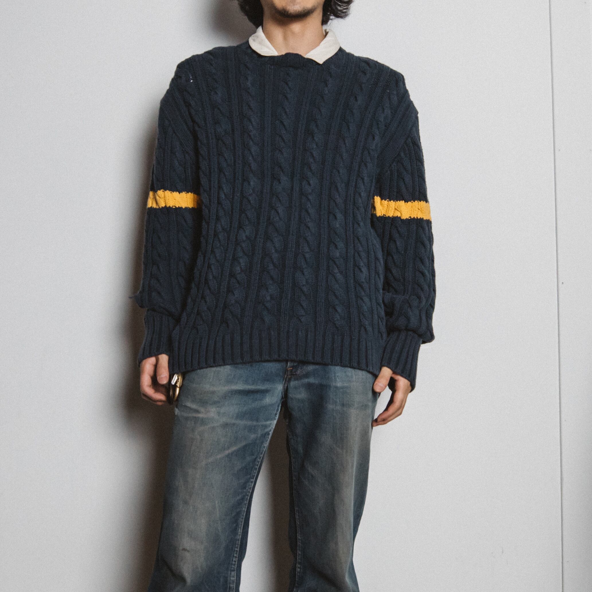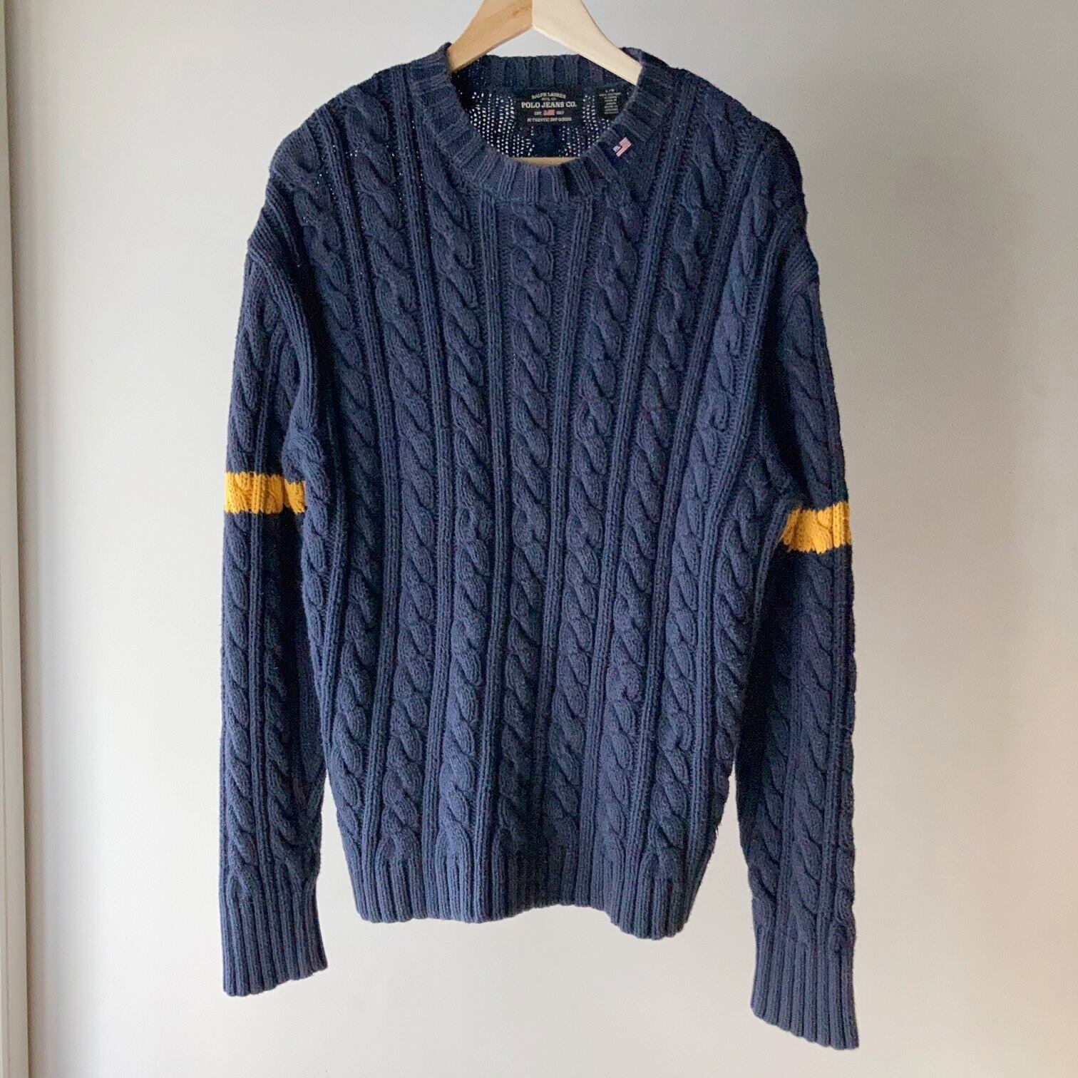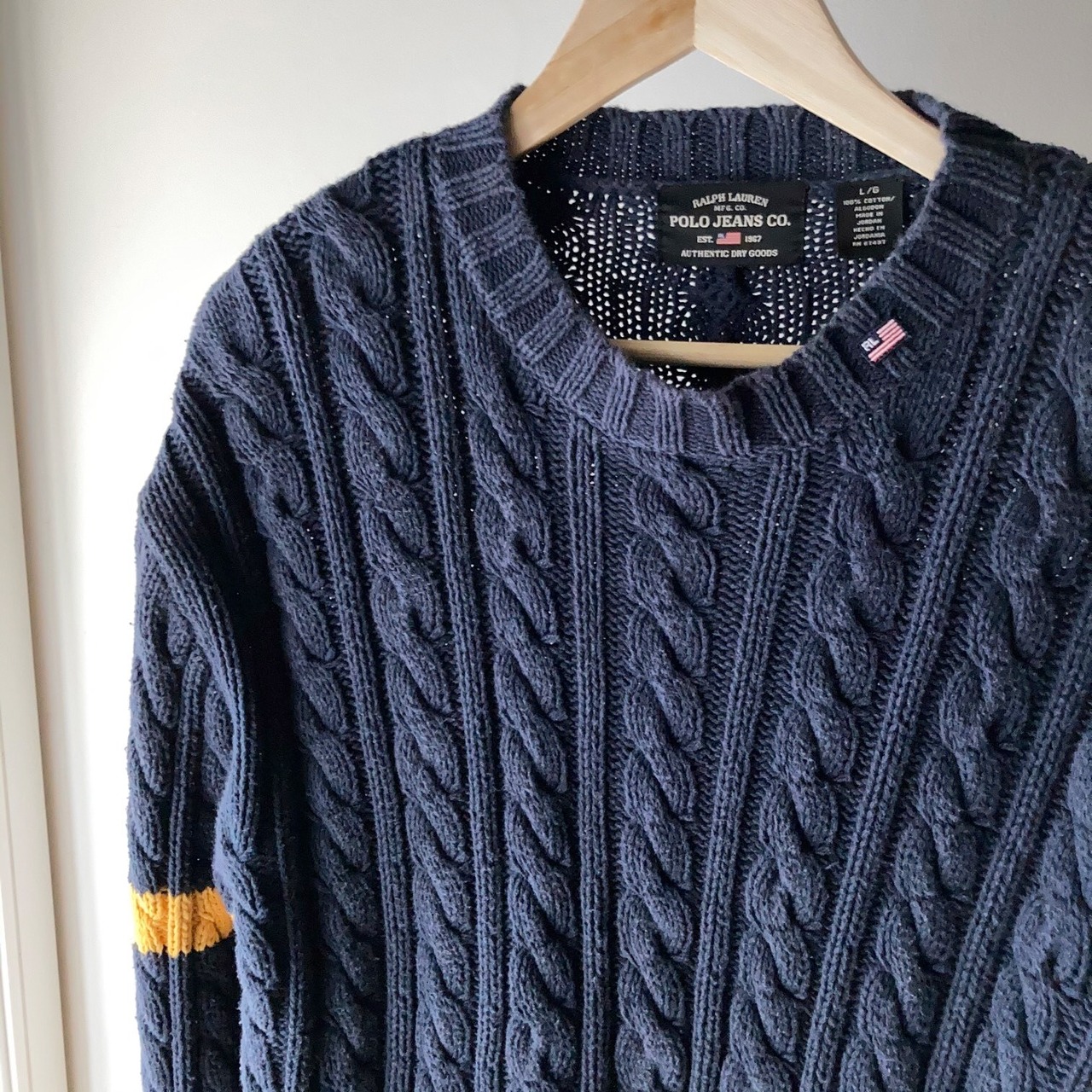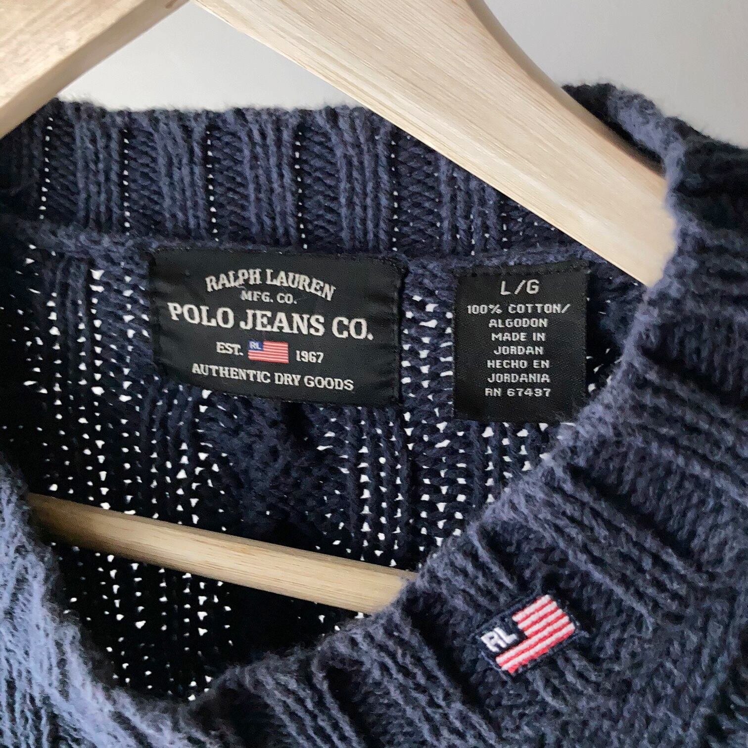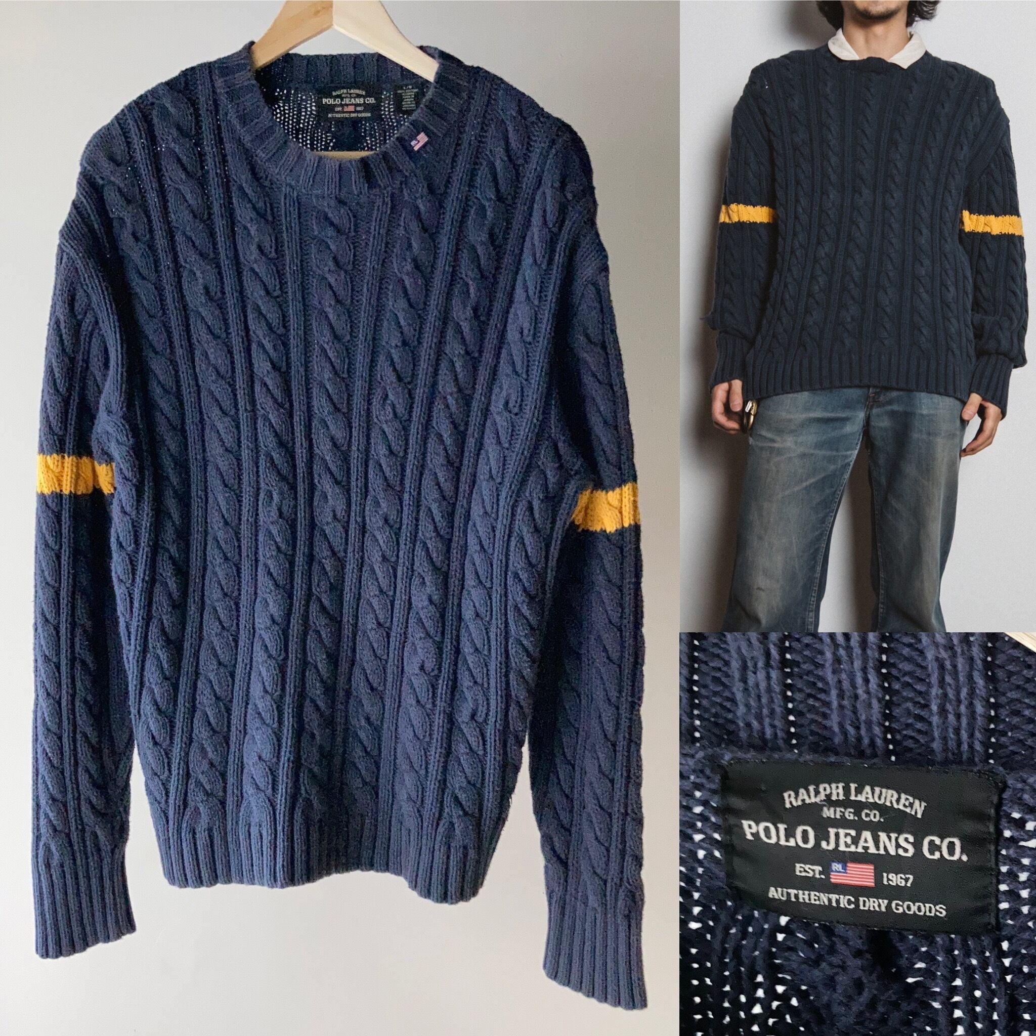 ラルフローレンPOLO JEANSラインのケーブル編みコットンニットセーターです。