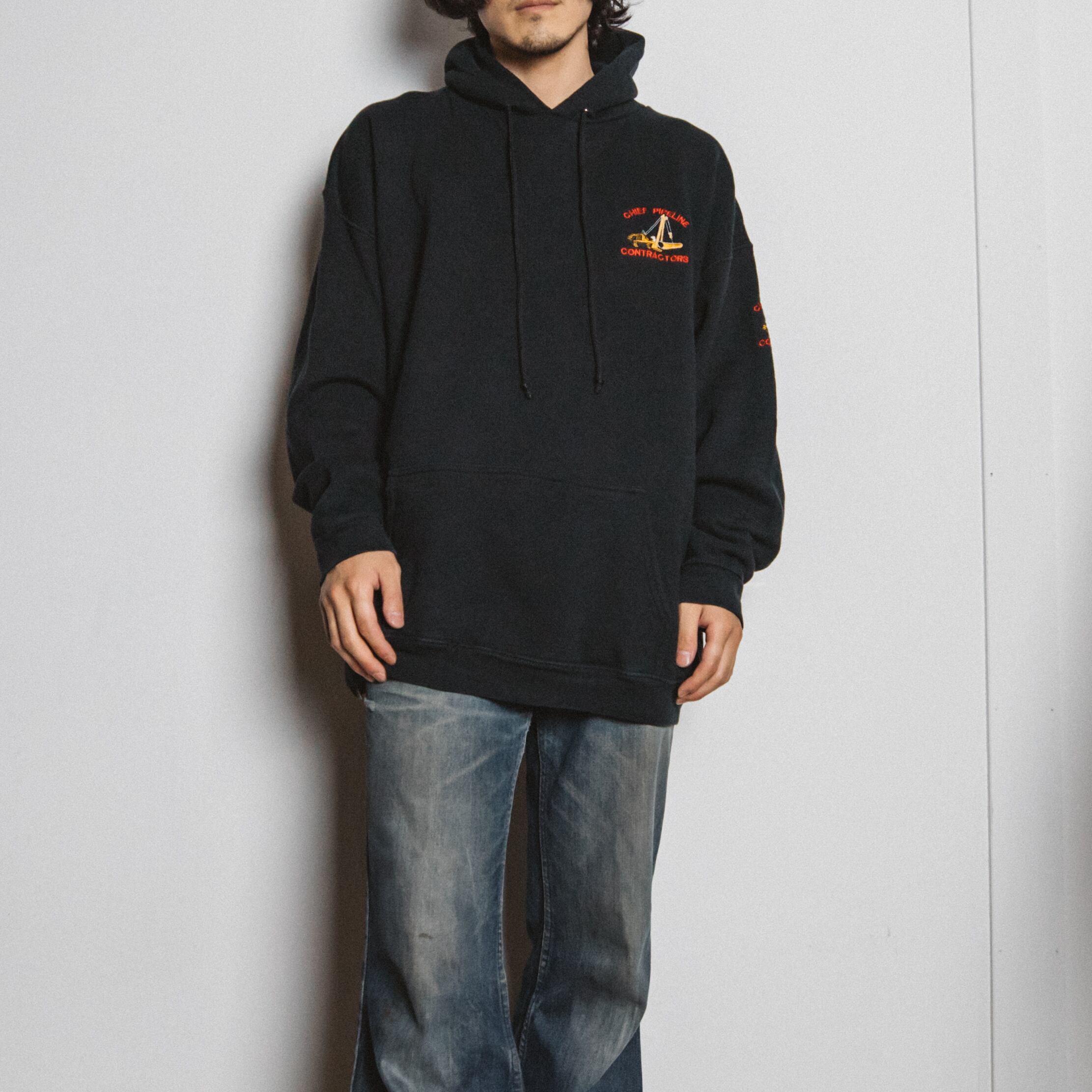 刺繍 スウェットパーカー ブラック【1113T46】