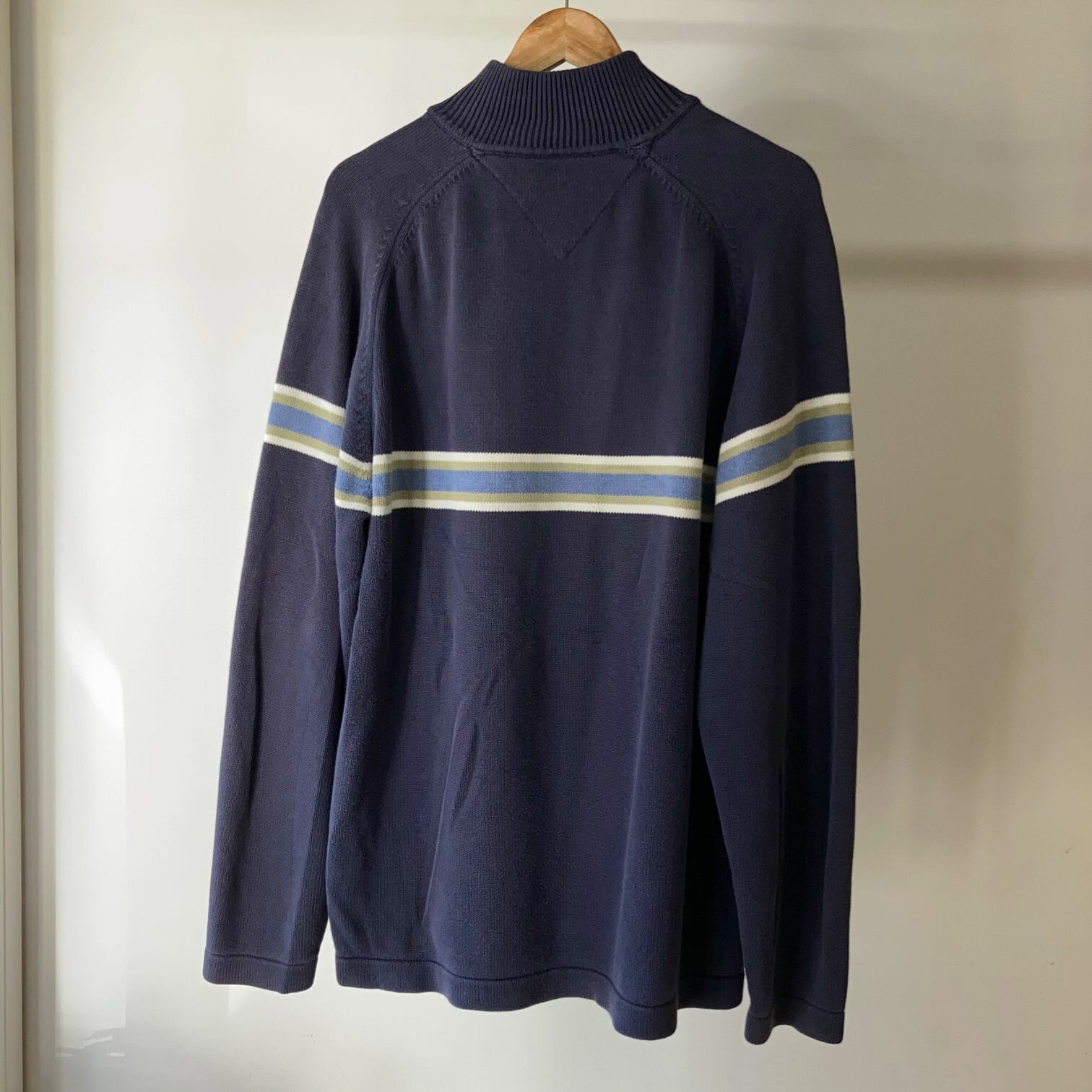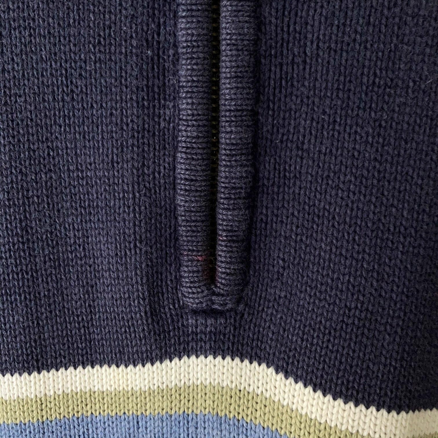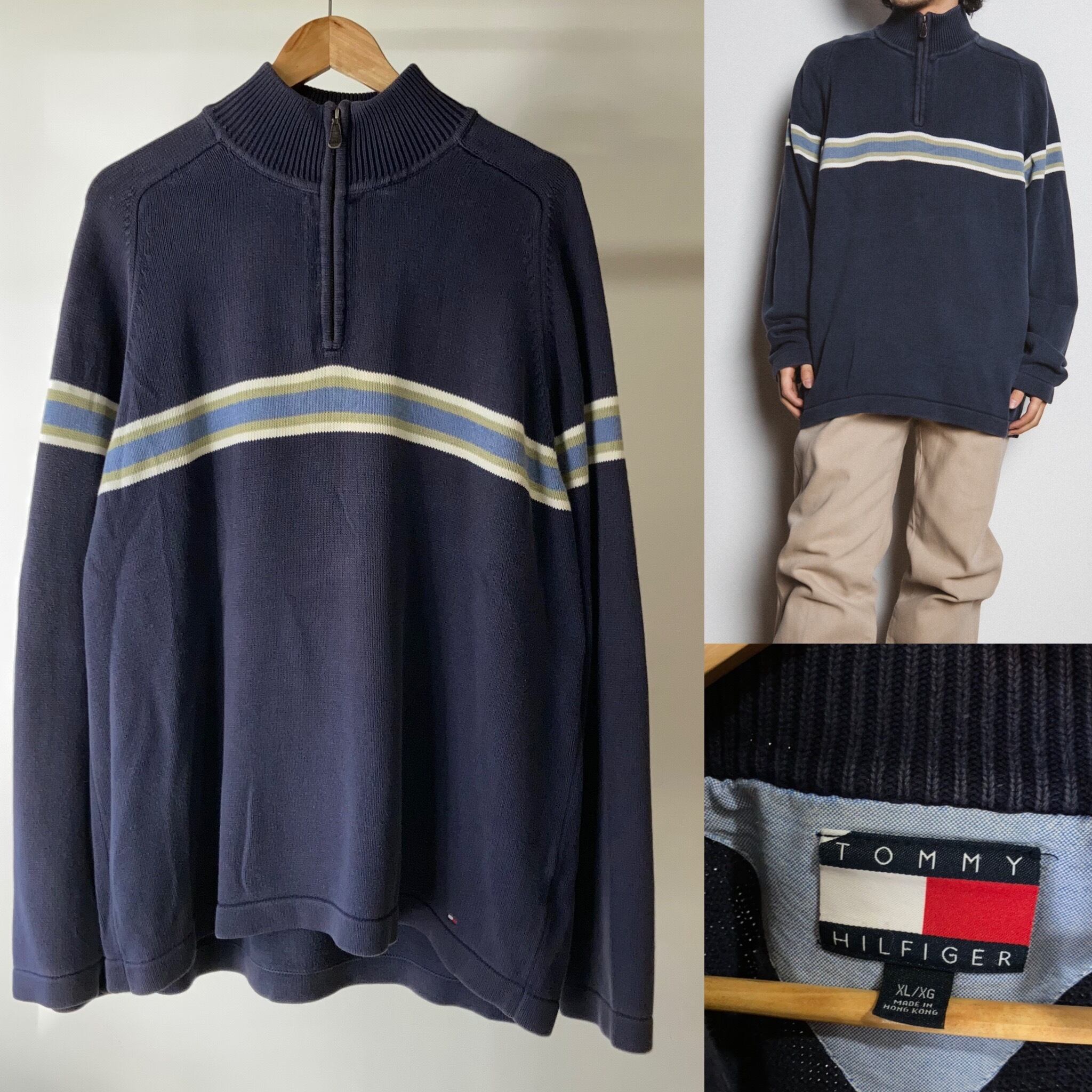 TOMMY HILFIGERのボーダーハーフジップ ニットです。