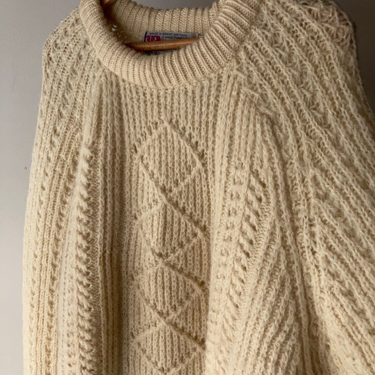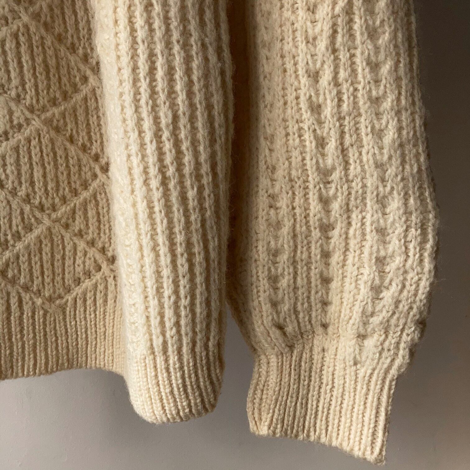 厚手の編み込みウール生地を使用したフィッシャーマンニット(アランニット)