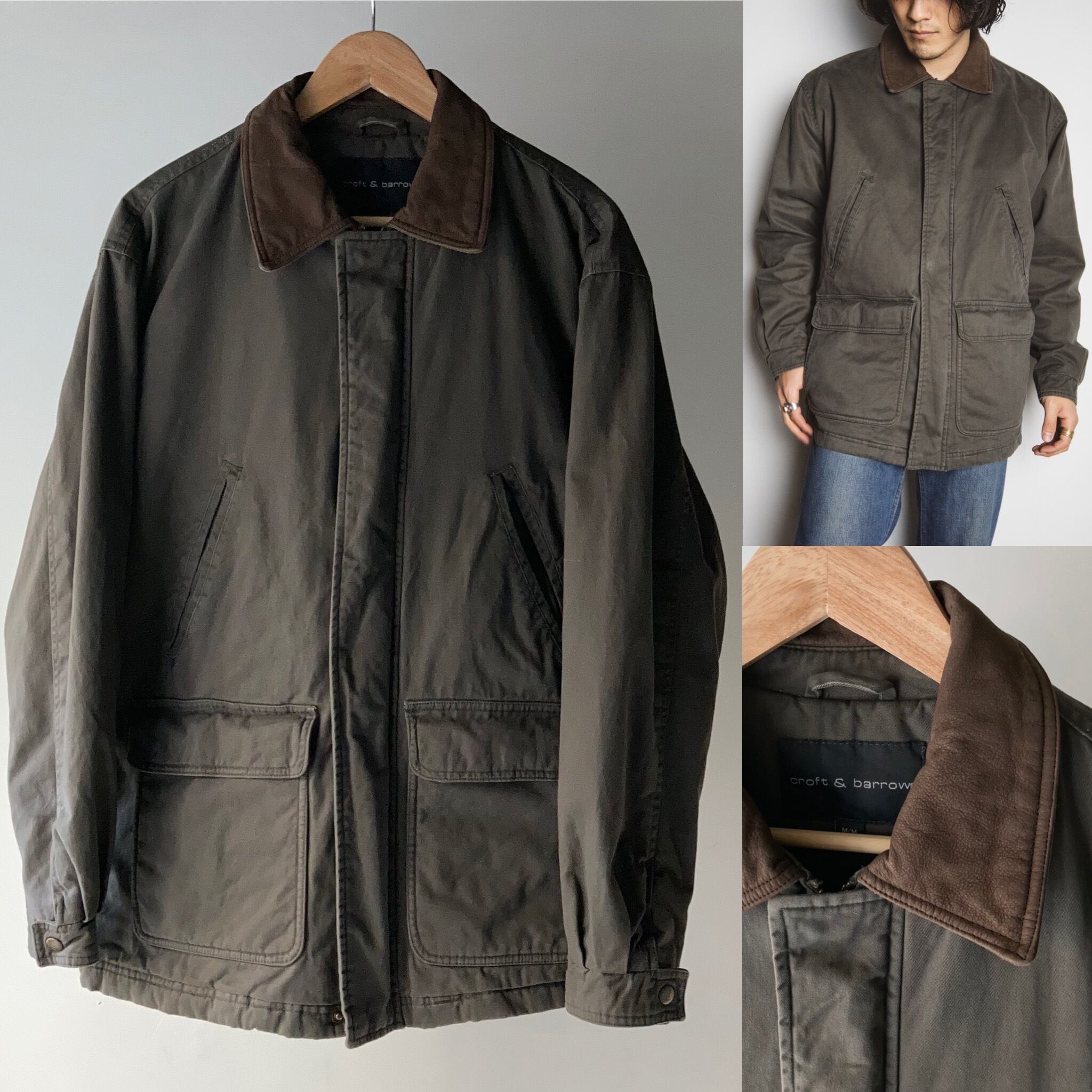 襟がスエード生地に切り替えとなっている渋いブラウンのアウター。