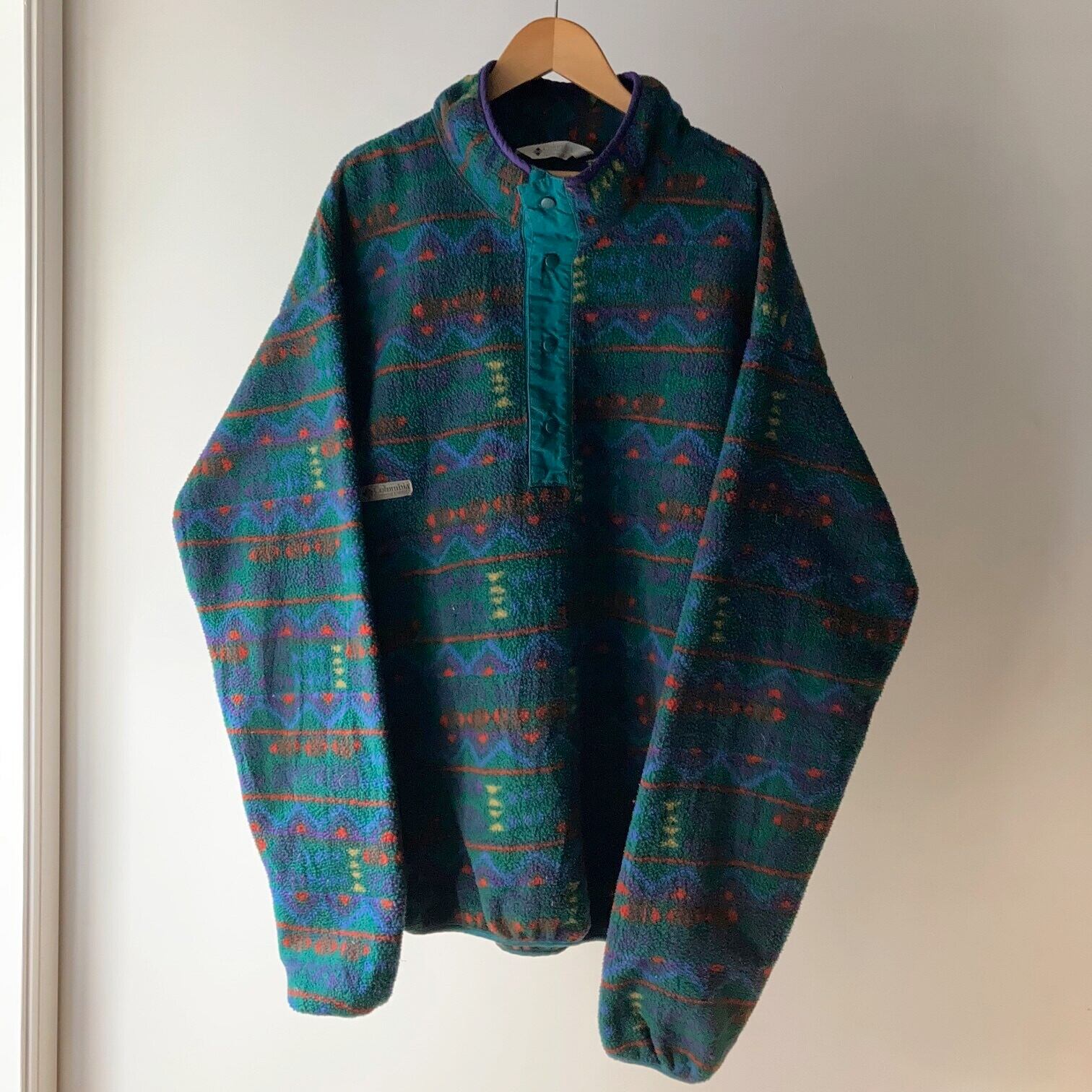 90's Columbia フリースプルオーバー 総柄【1204A18】