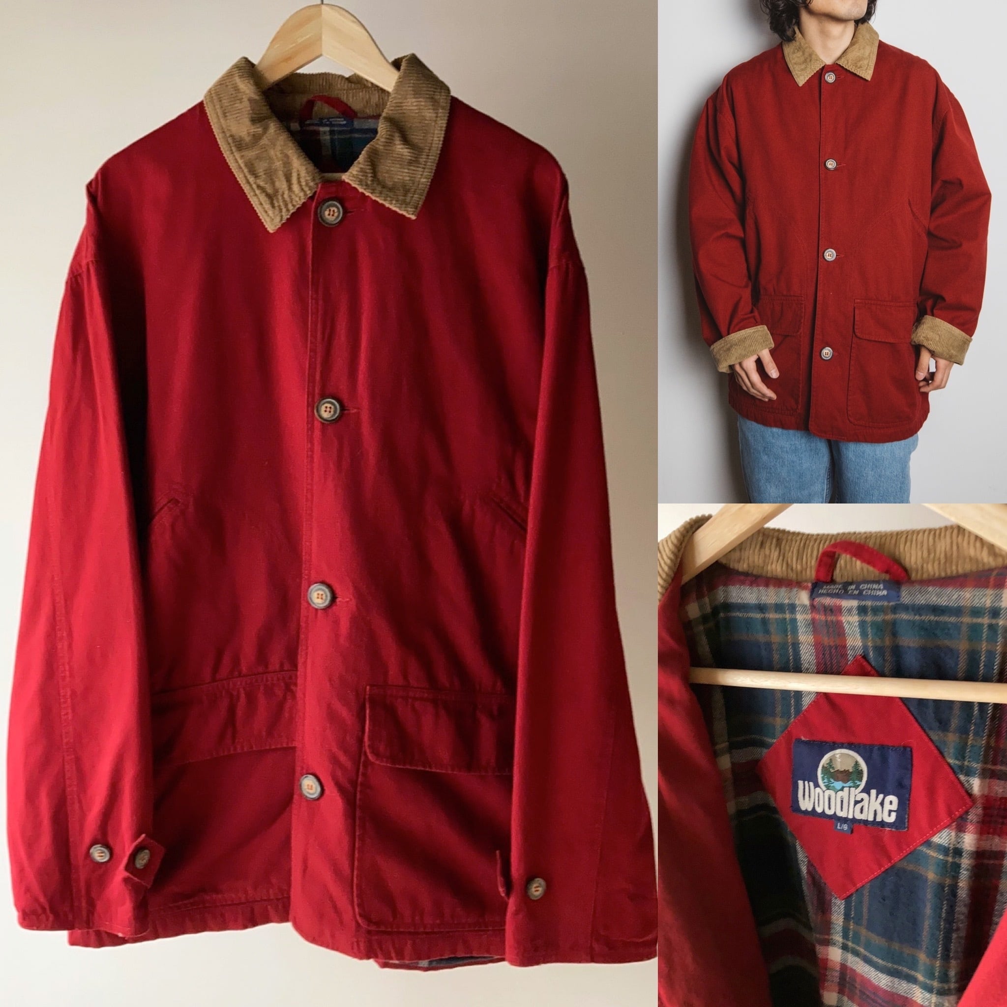 【年末50%OFF❗️】襟コーデュロイハンティングジャケット ダークレッド【1211A29】