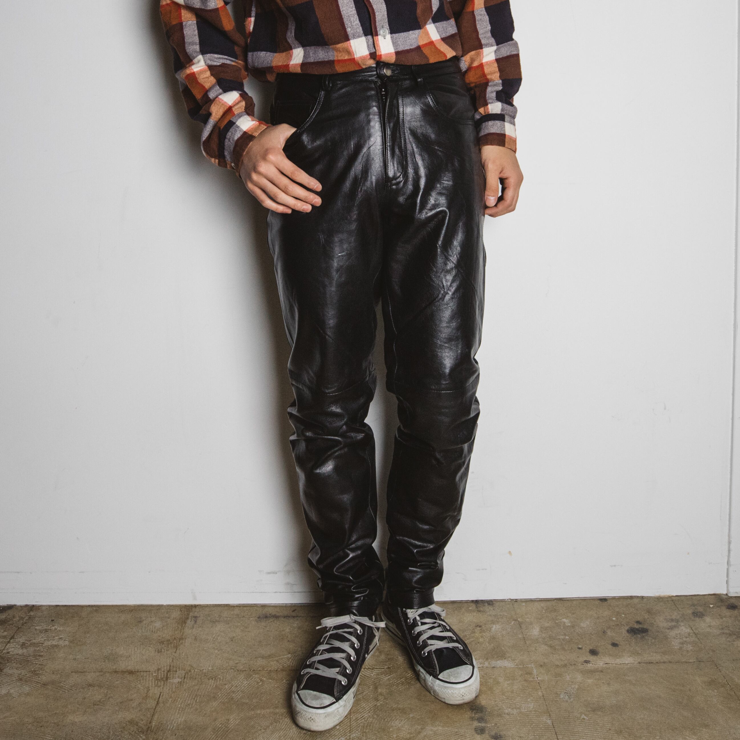 カジュアルなスタイルにもストリートなスタイルにも綺麗めなスタイルにも合わせることができる万能レザーパンツ。