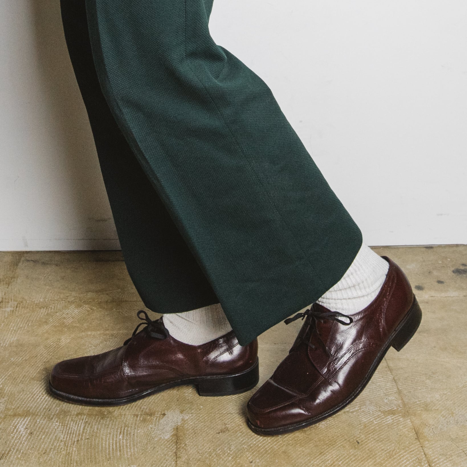 赤茶というカラーはどんなパンツとも合わせやすく、足下を目立たせることができるのでスタッフ一押しのカラーです。