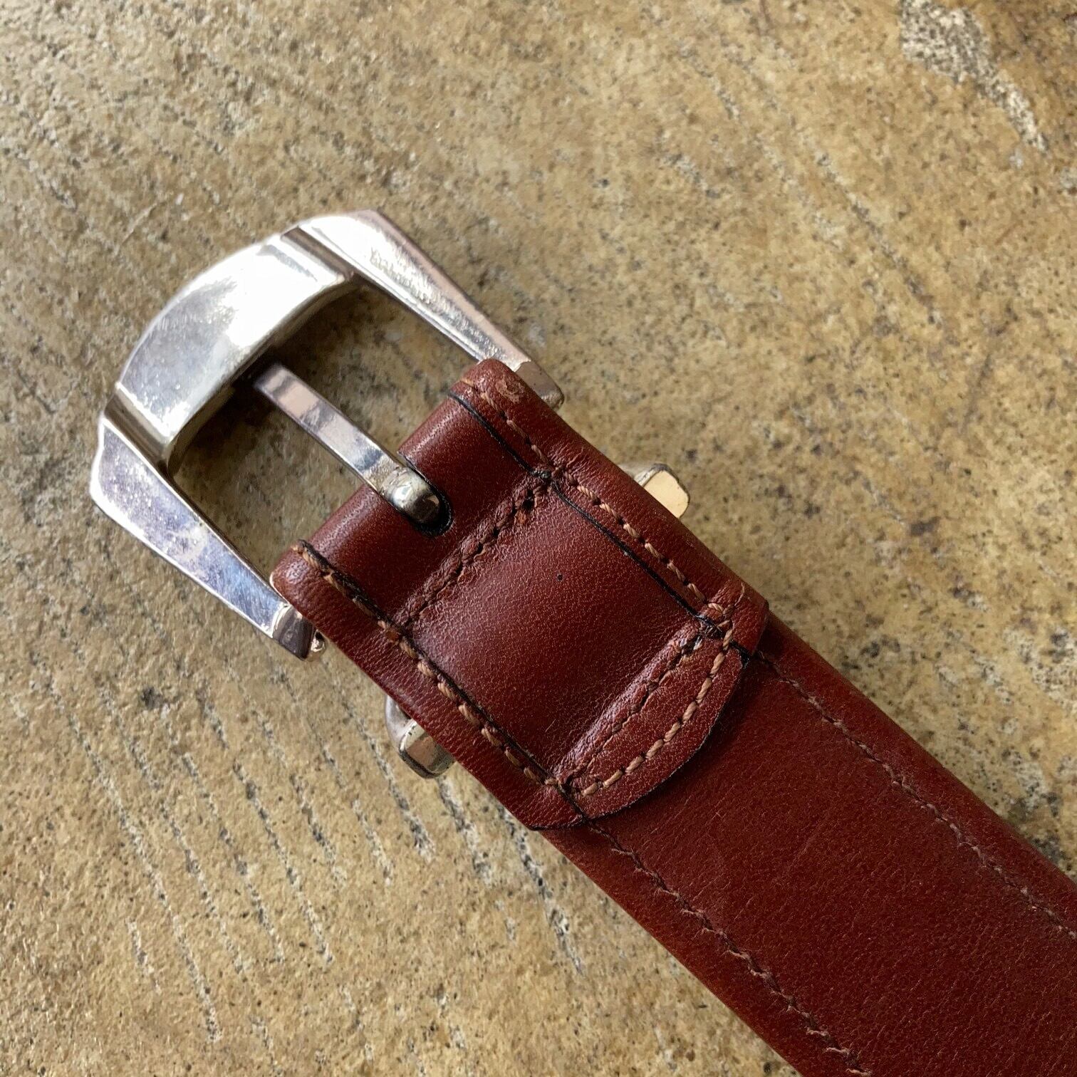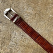 ウエスタン調のバックルを使用したデザインレザーベルト。