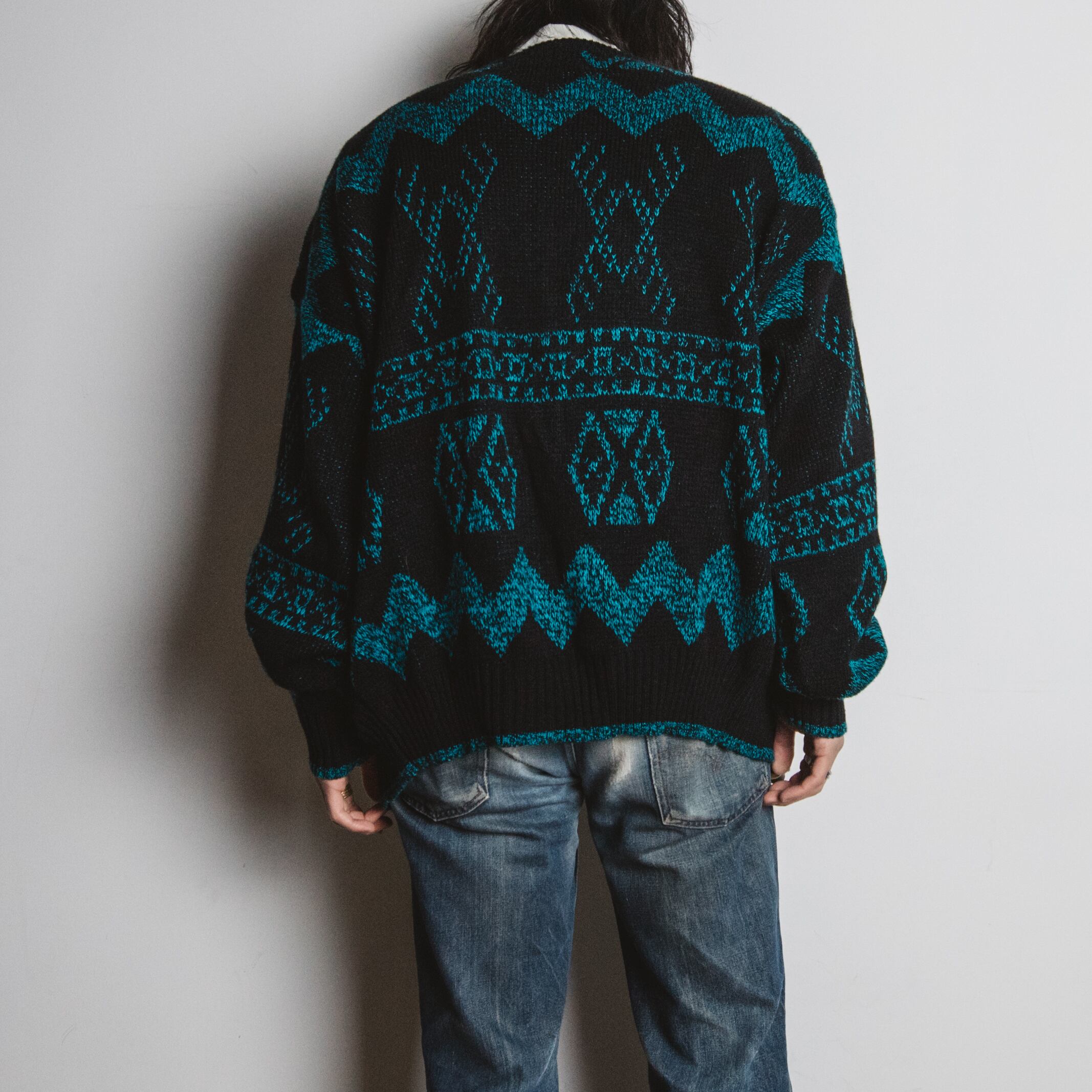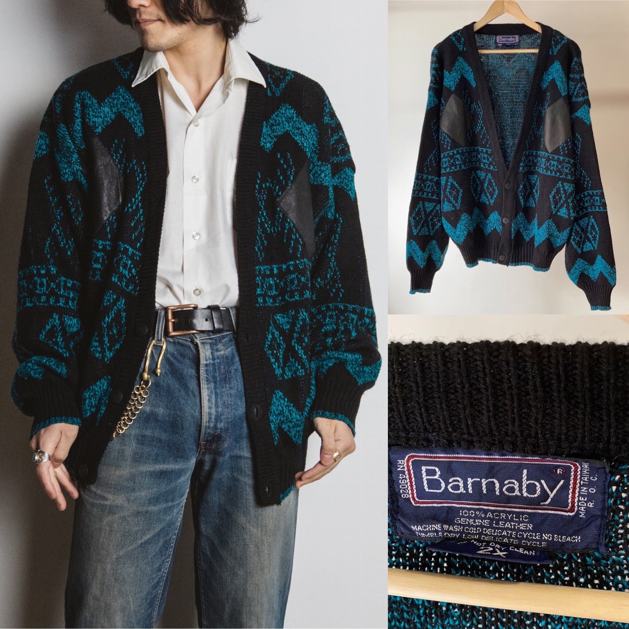 ~90's 総柄アクリルニットカーディガン【1218A15】