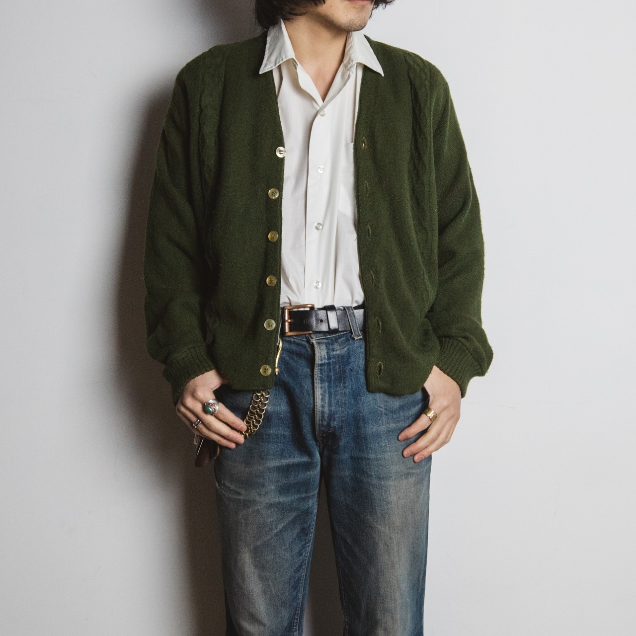 70's~ アクリルニットカーディガン 抹茶グリーン【1218A16】