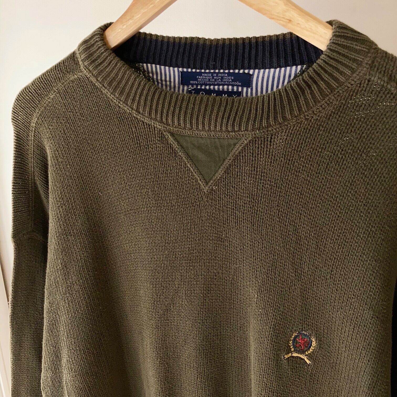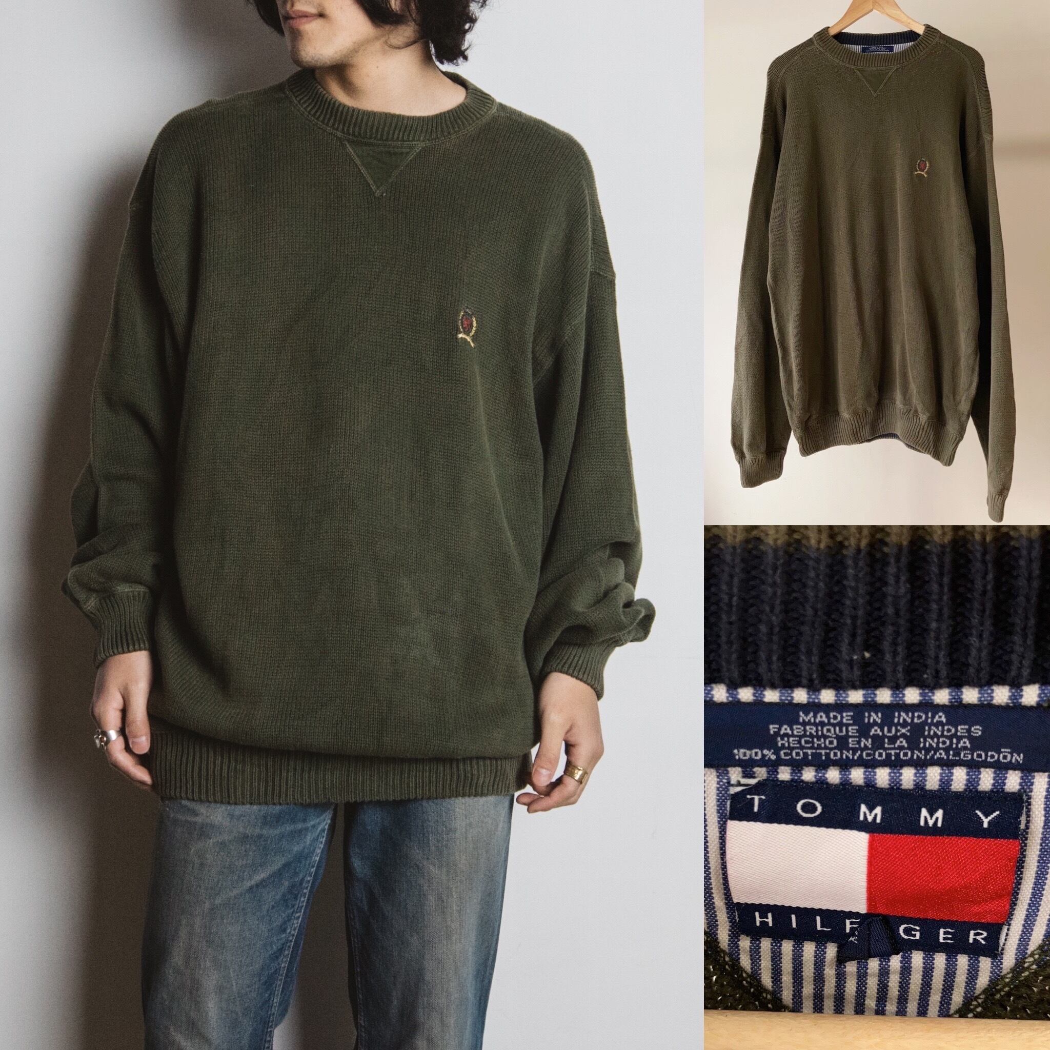 TOMMY HILFIGER オリーブグリーン コットンニット【1218A17】