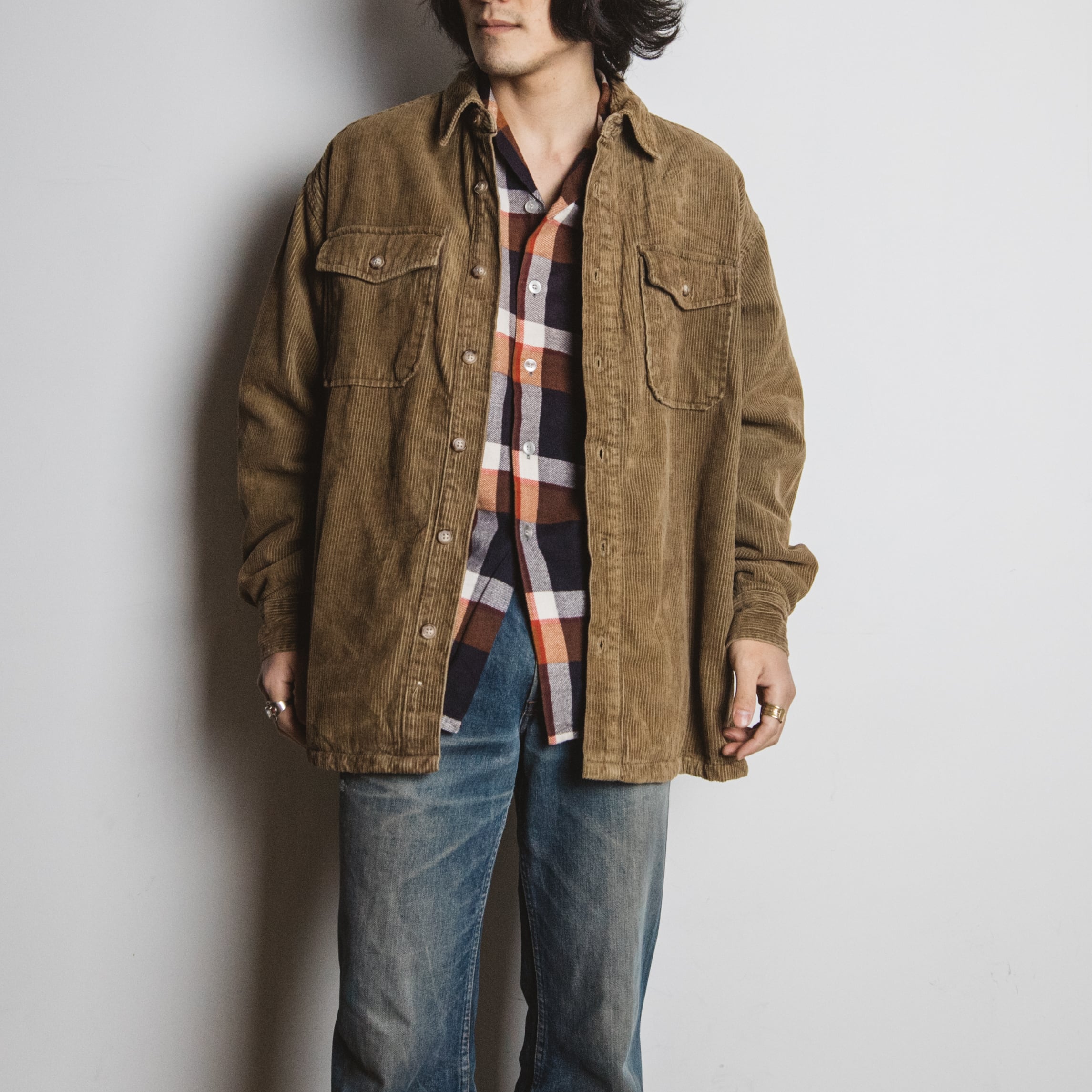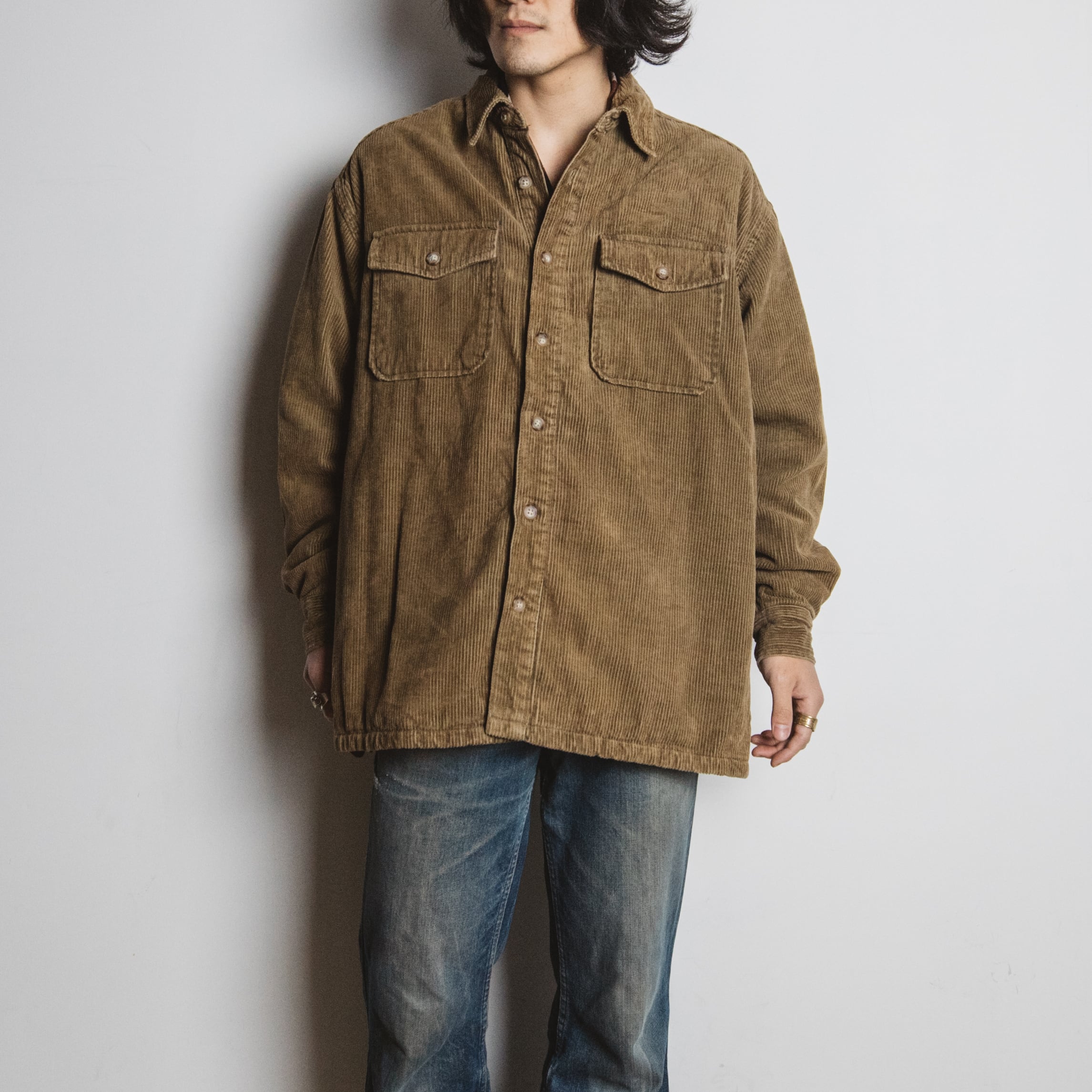 裏地に分厚いライナーが付いた厚手のコーデュロイシャツジャケットです。