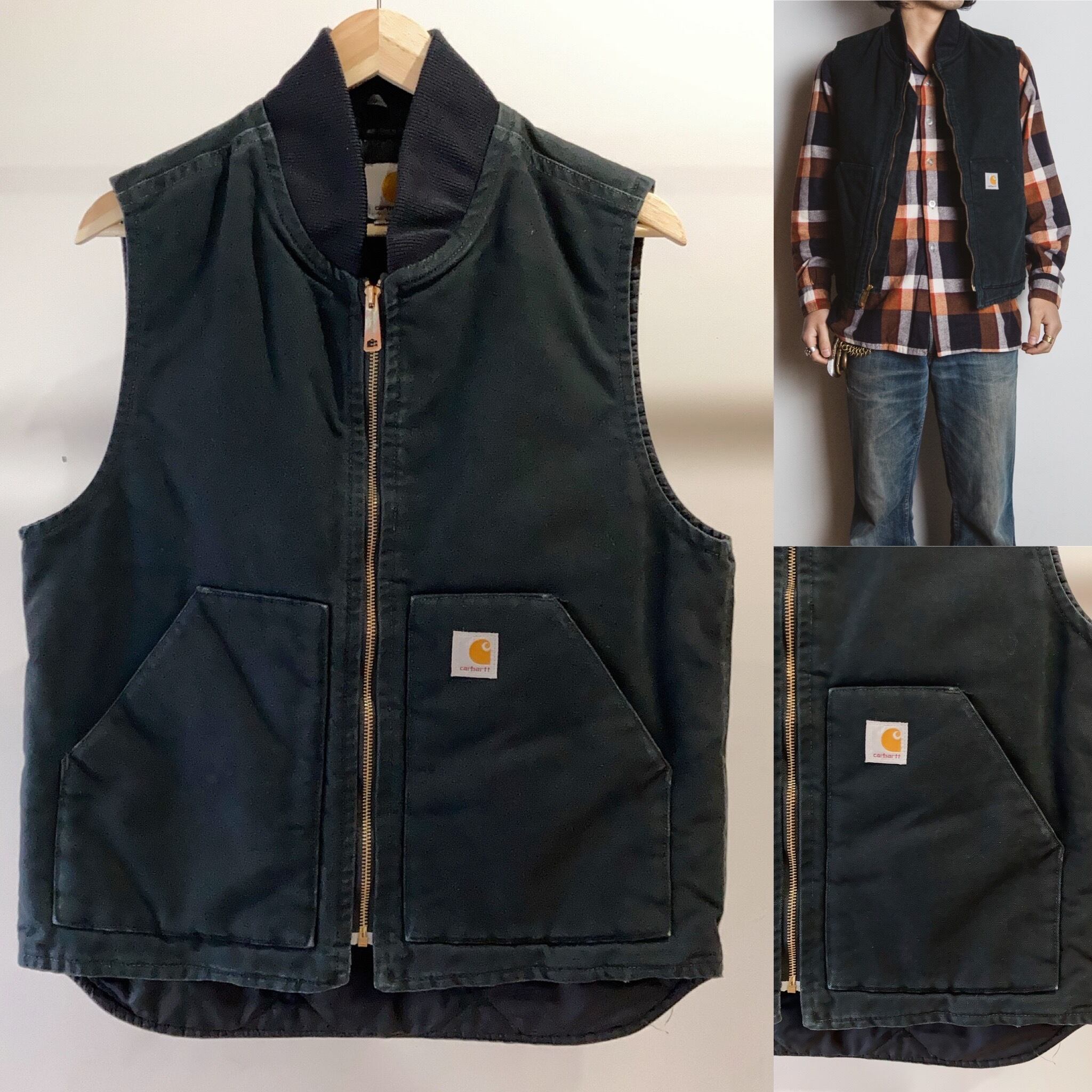 Carharttの裏地キルティングダックベストです。