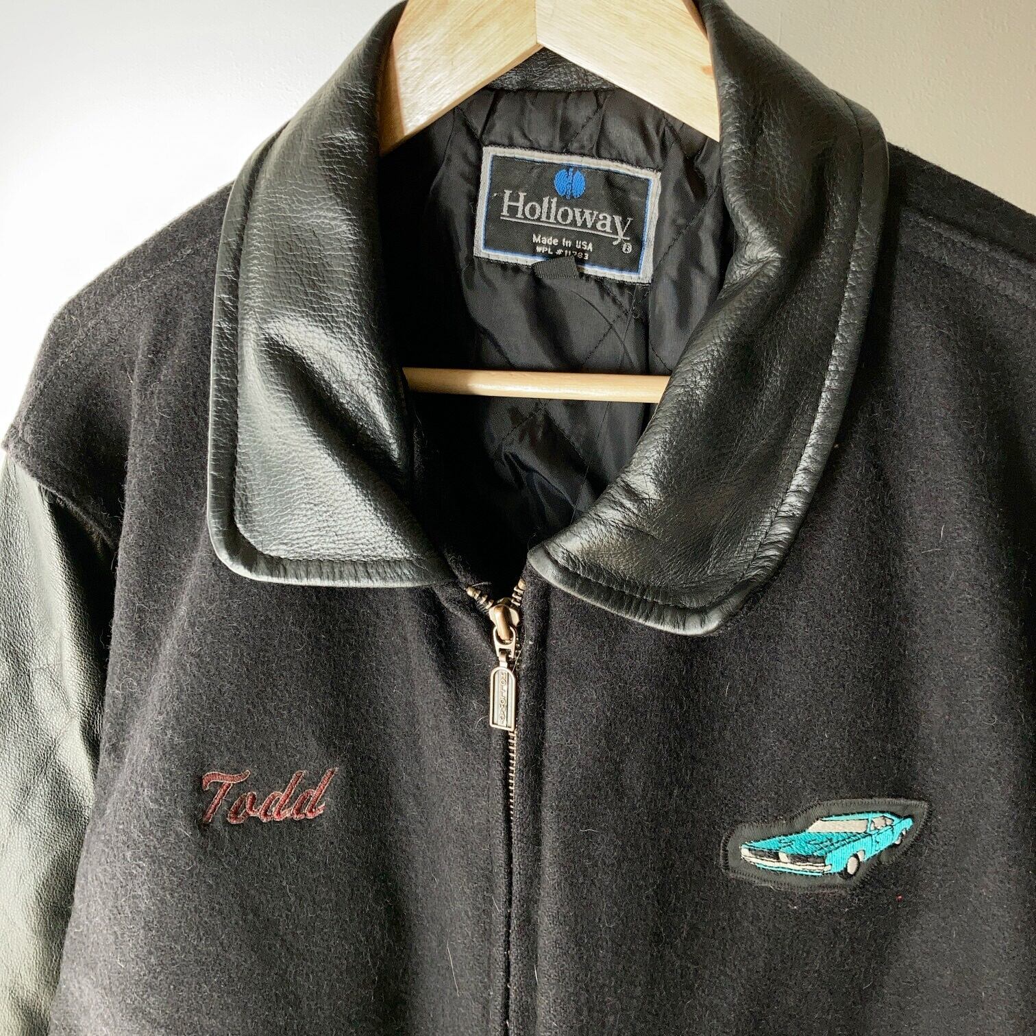 ~90's 刺繍入り レザー切り替えスタジャン ブラック【1218A57】