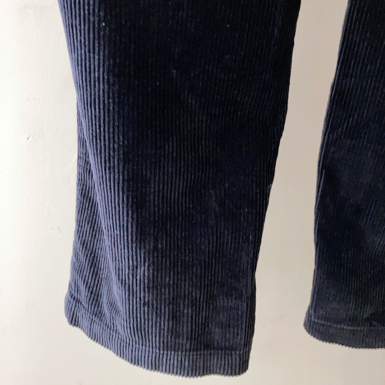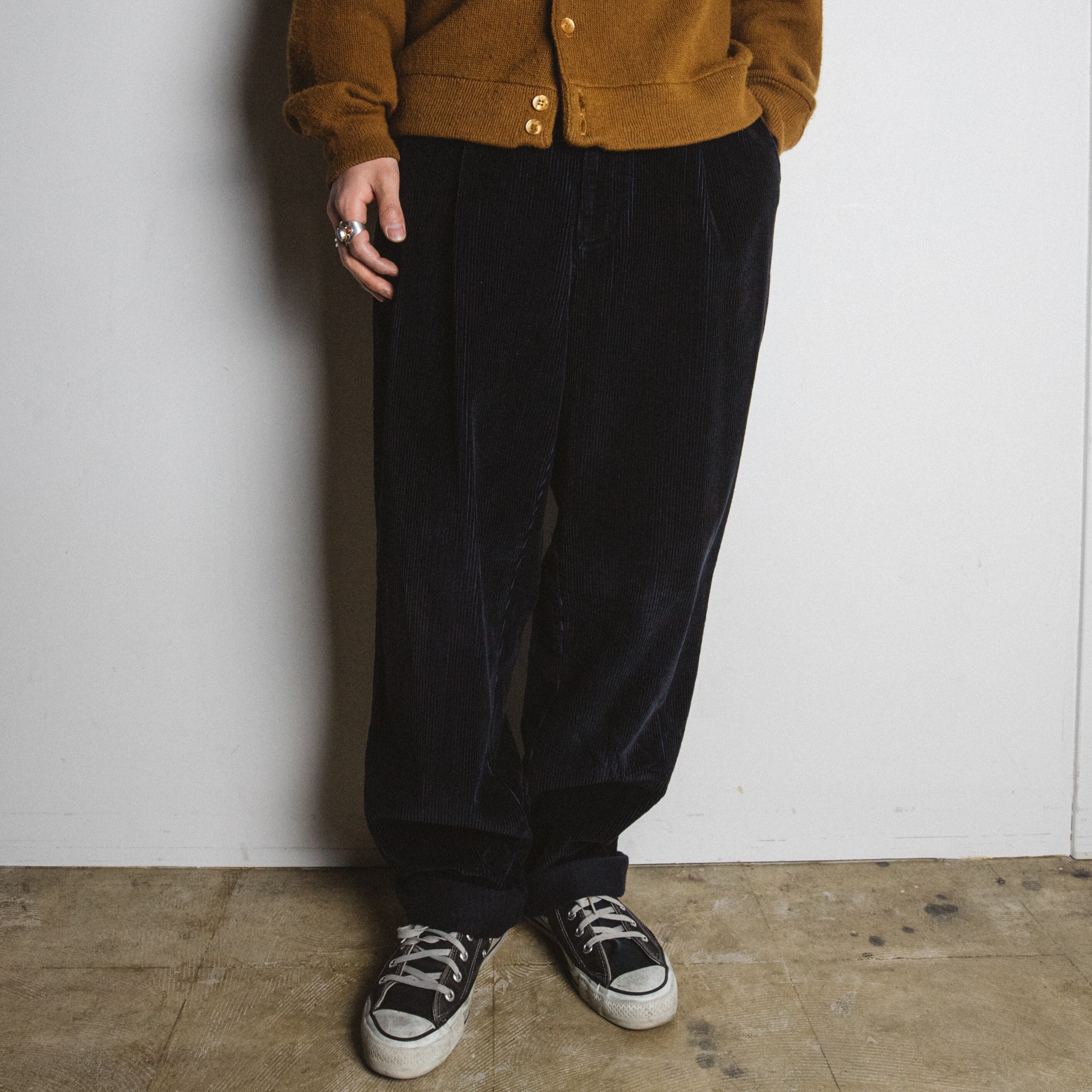 クールな印象のネイビーカラーの太畝コーデュロイパンツ。