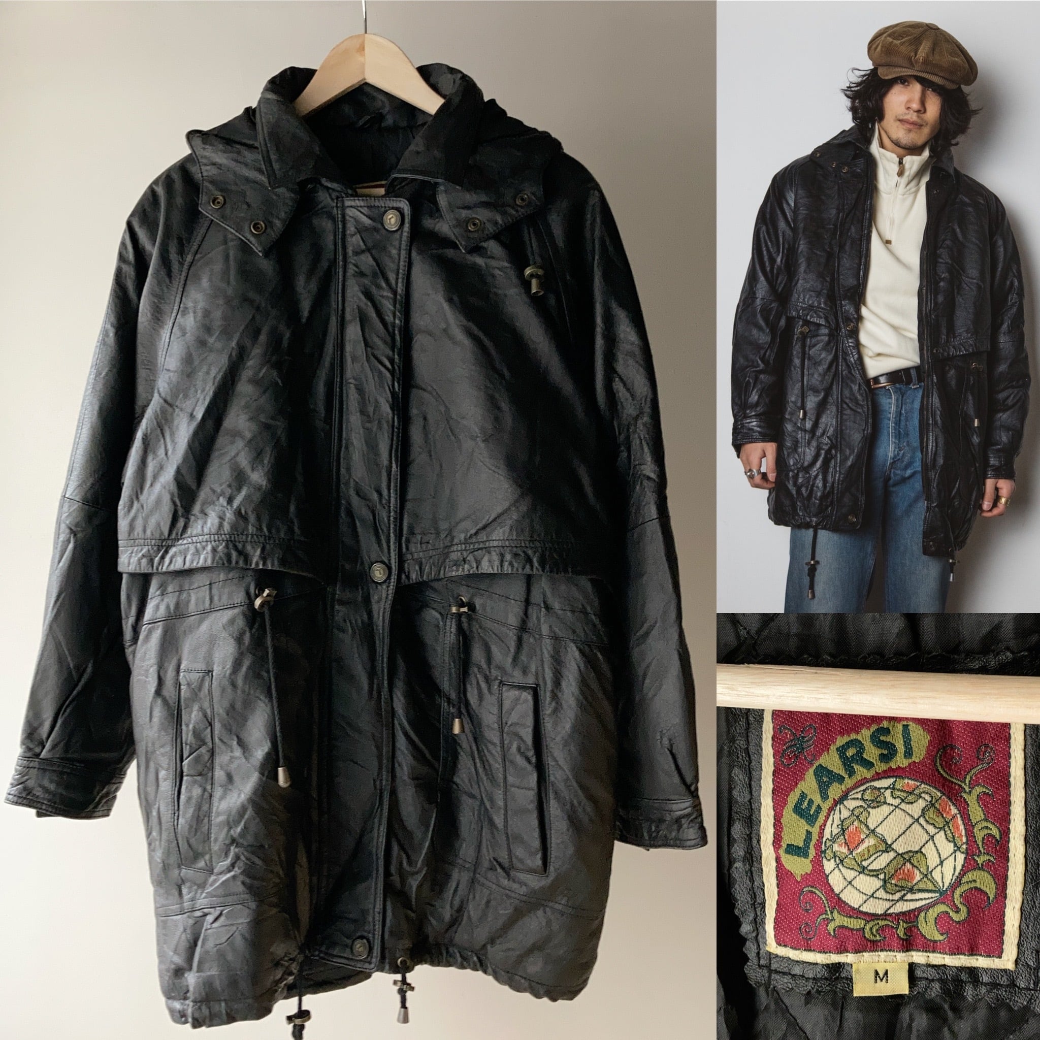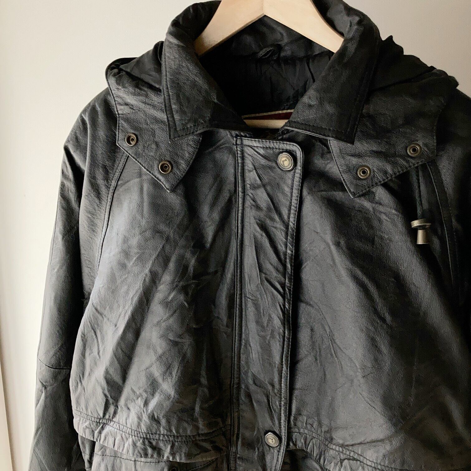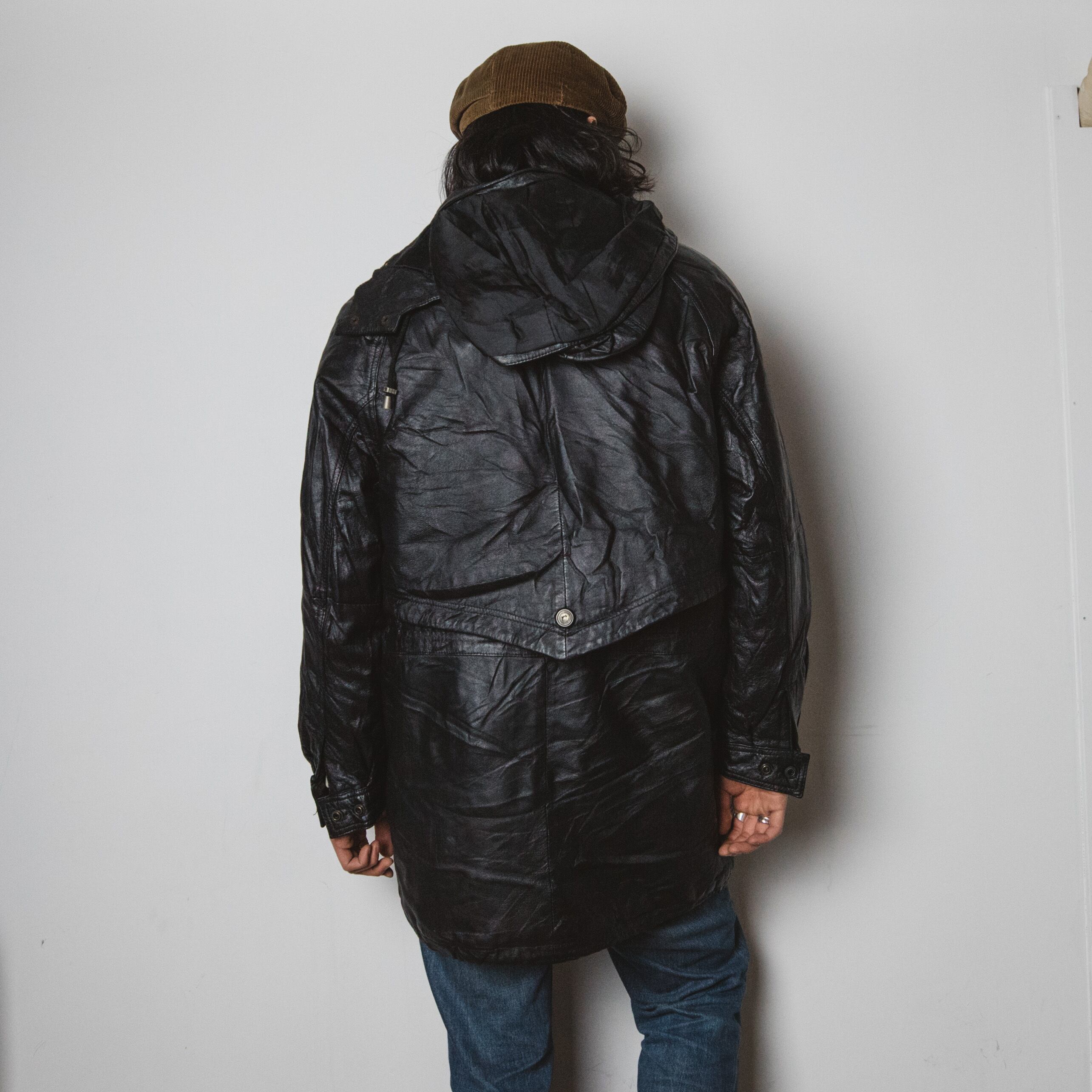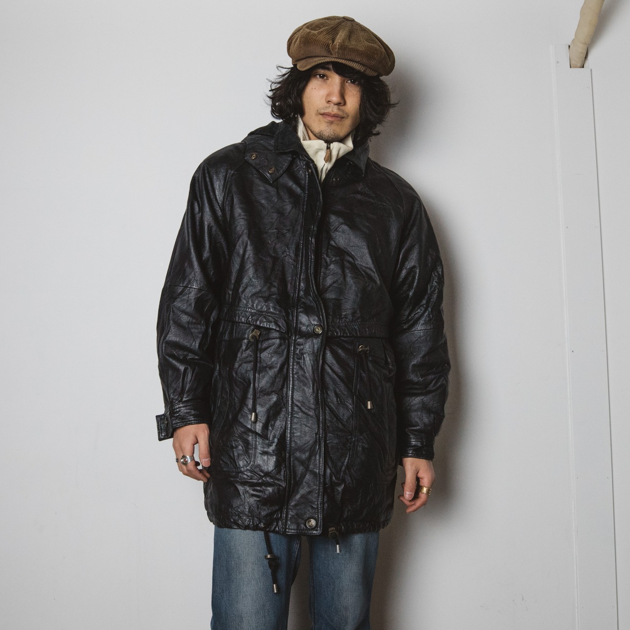ブラックレザー ハーフコート 取り外し可能フード付き【1231S23】