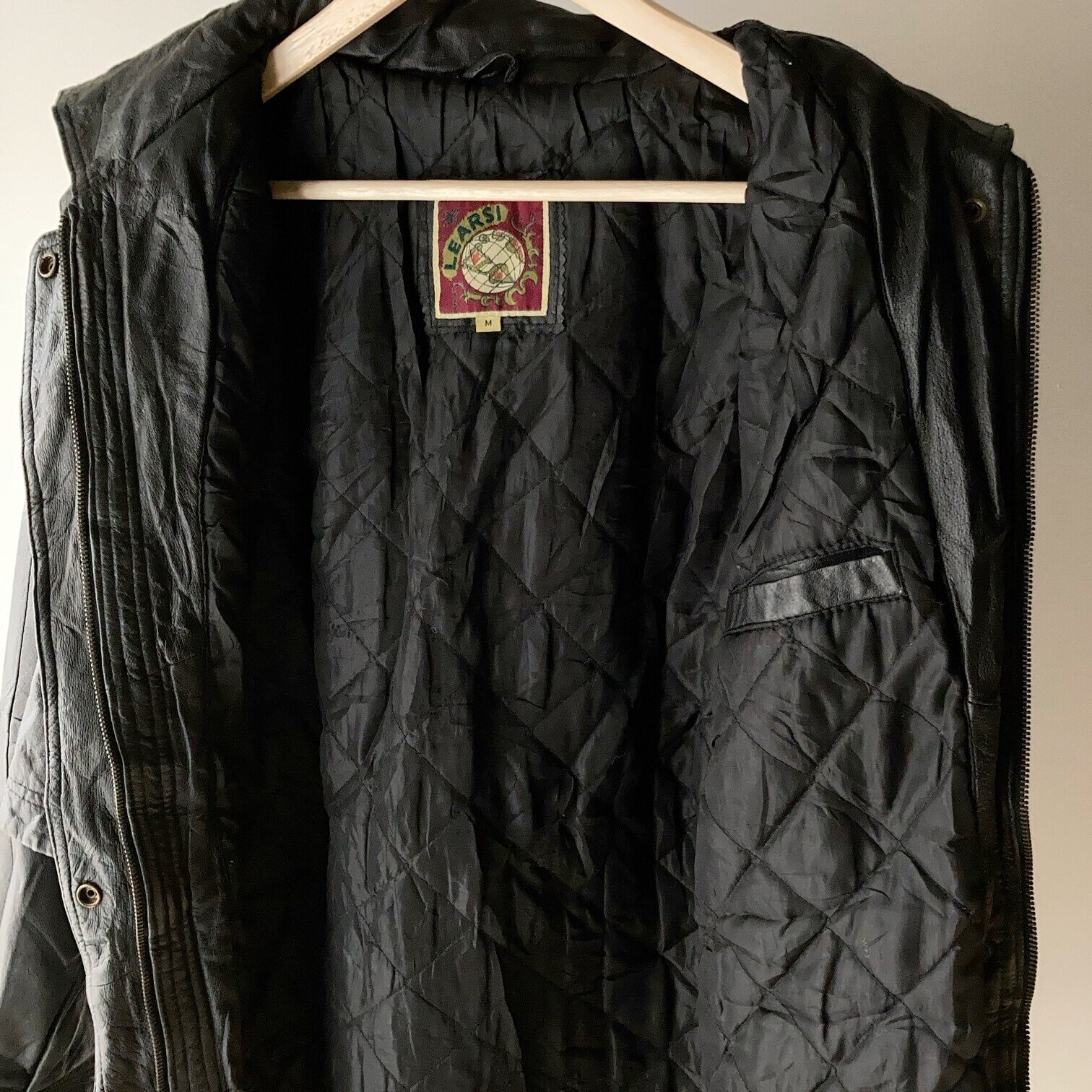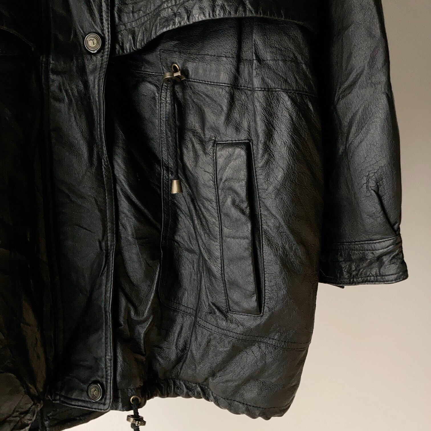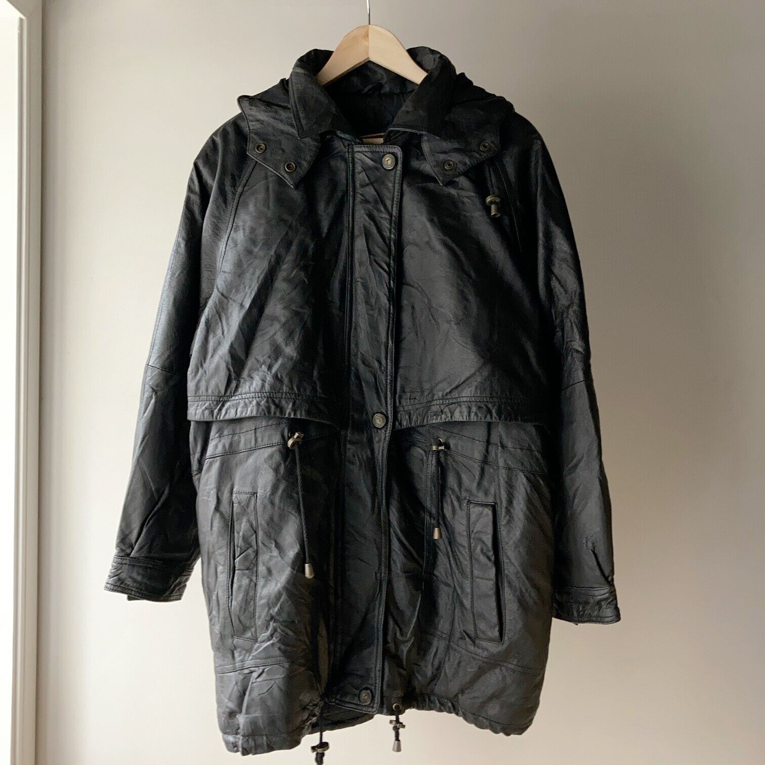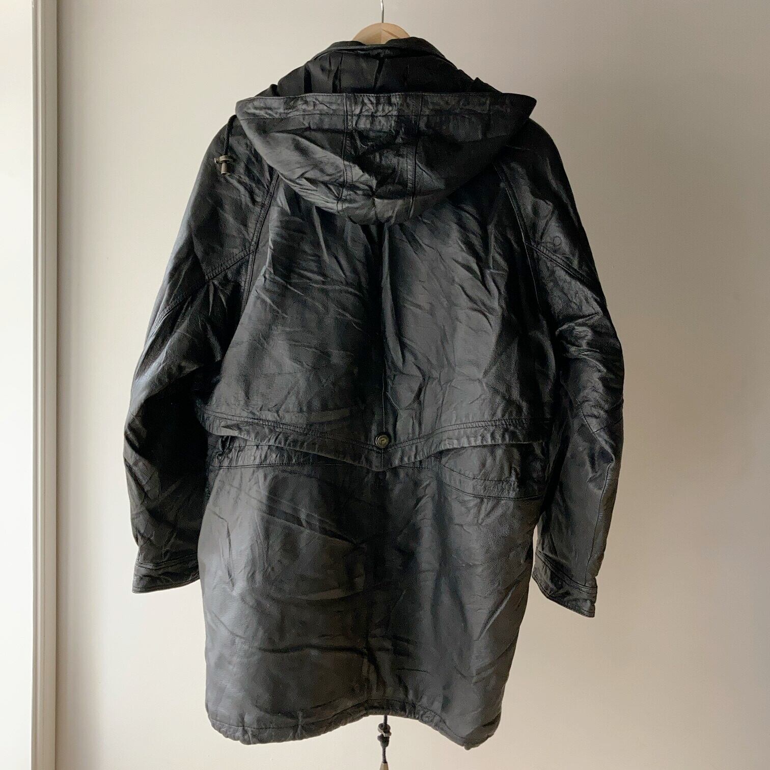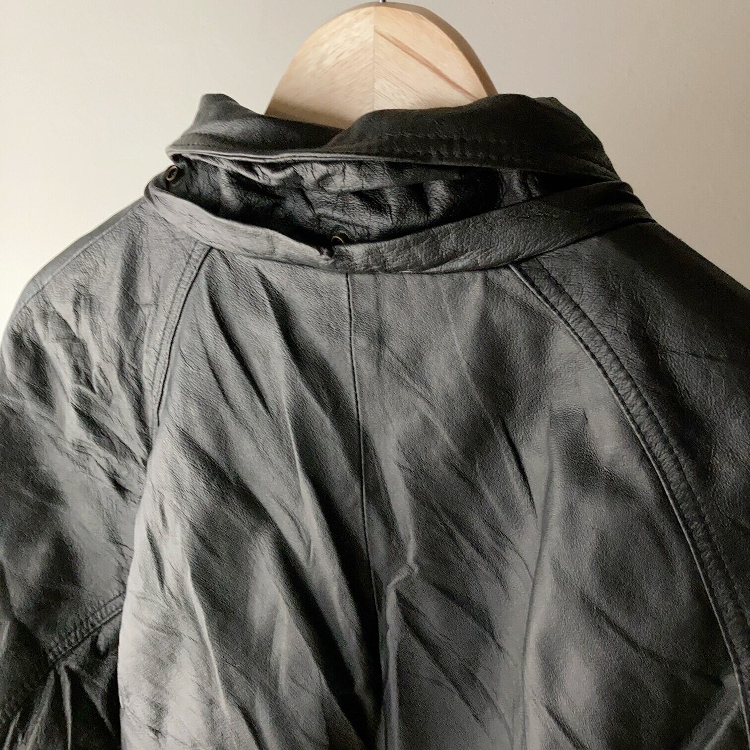 ブラックレザー ハーフコート 取り外し可能フード付き【1231S23】