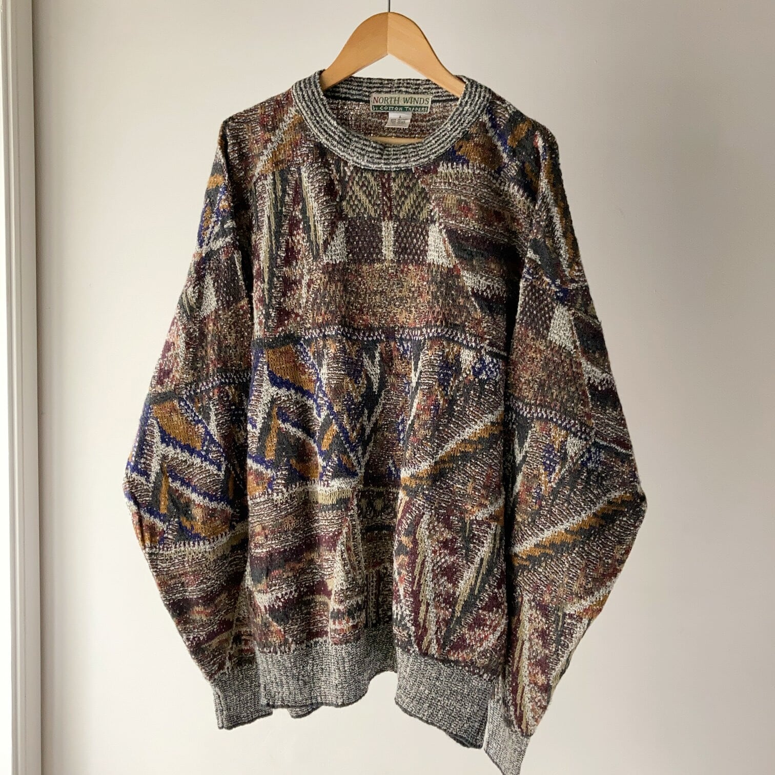 抽象的な柄とパターンで構成されたアーティスティックなニット。