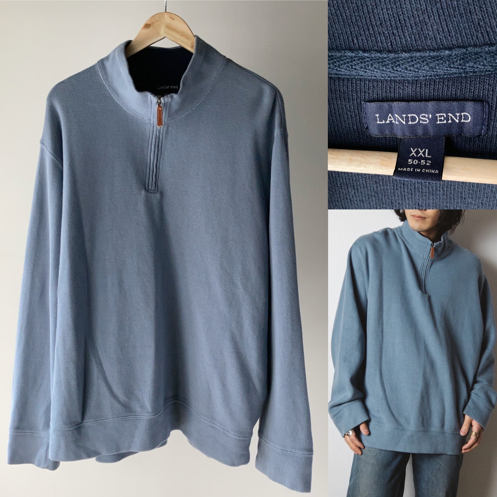LAND'S END ハーフジップ スウェット ブルーグレー 【0115A58】