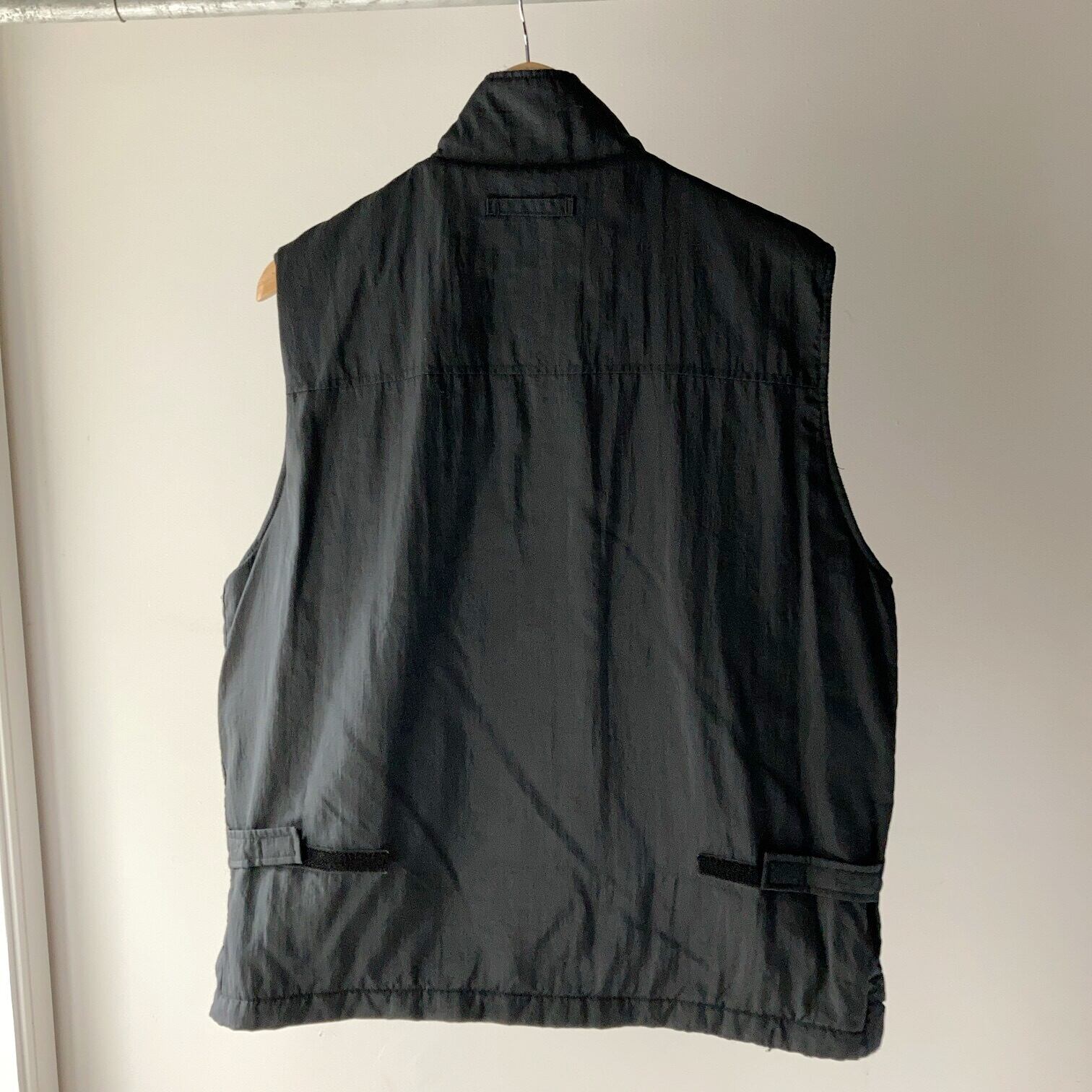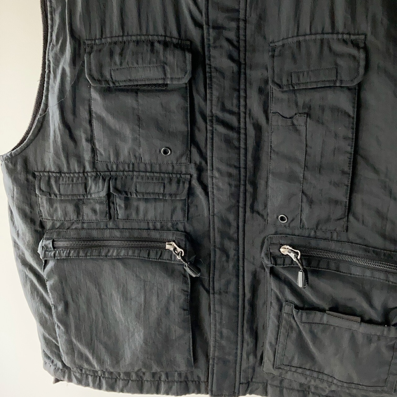 フィッシングベストのようなボタンの数・配置感が特徴的なブラックカラーのベストです!