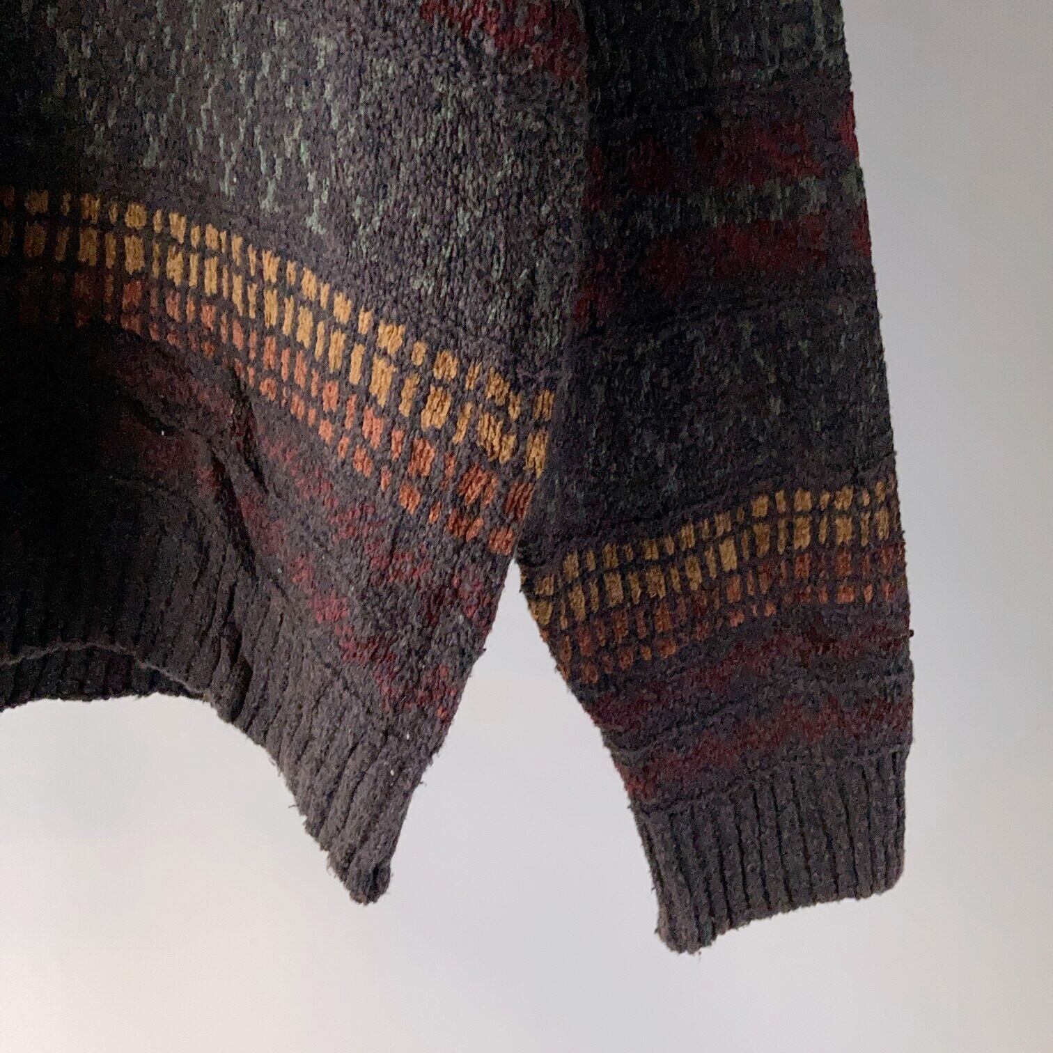 ブラウン系のグッドカラー総柄ニットです。