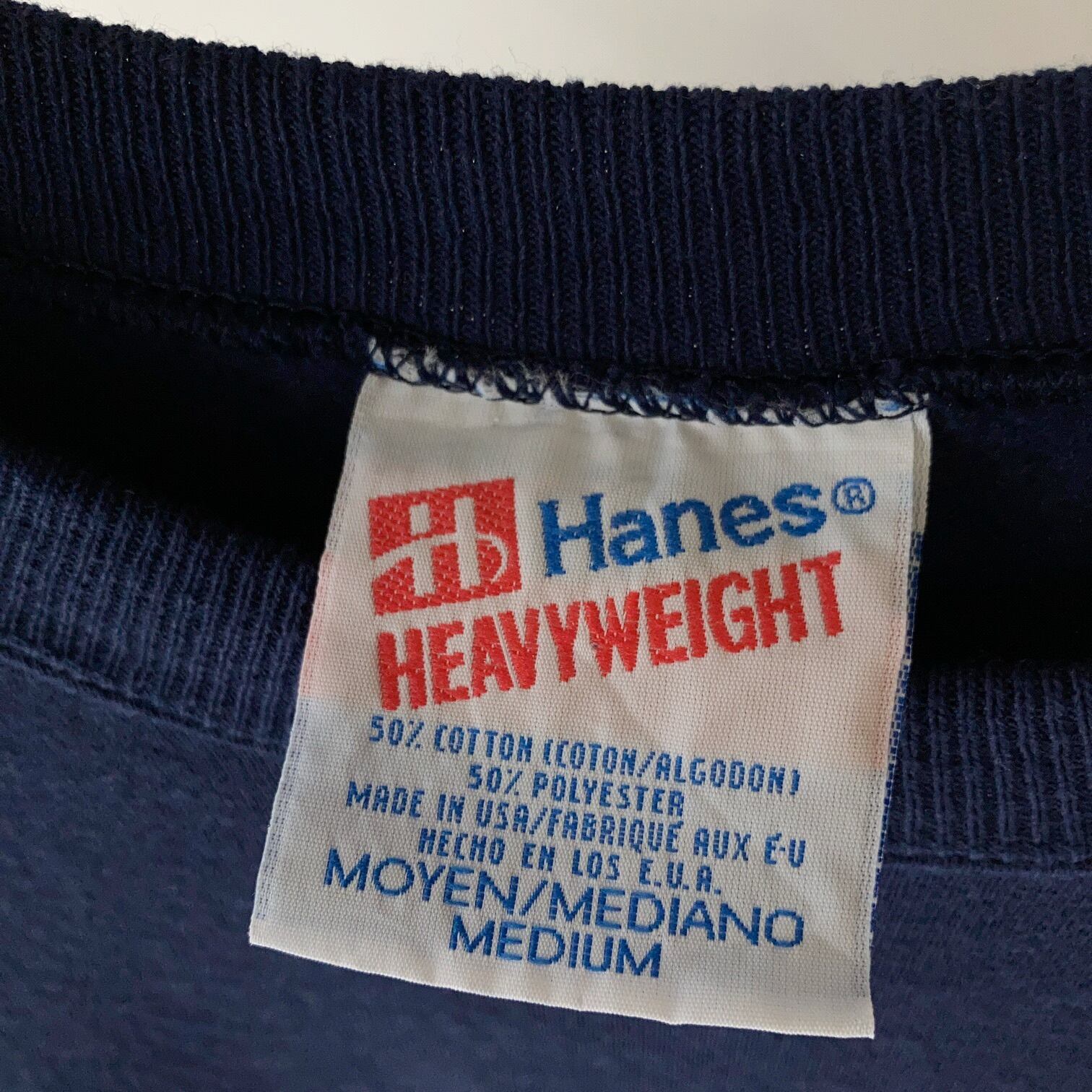 ネイビーカラーのスウェットに、ナイスカラーの刺繍が施されています。
