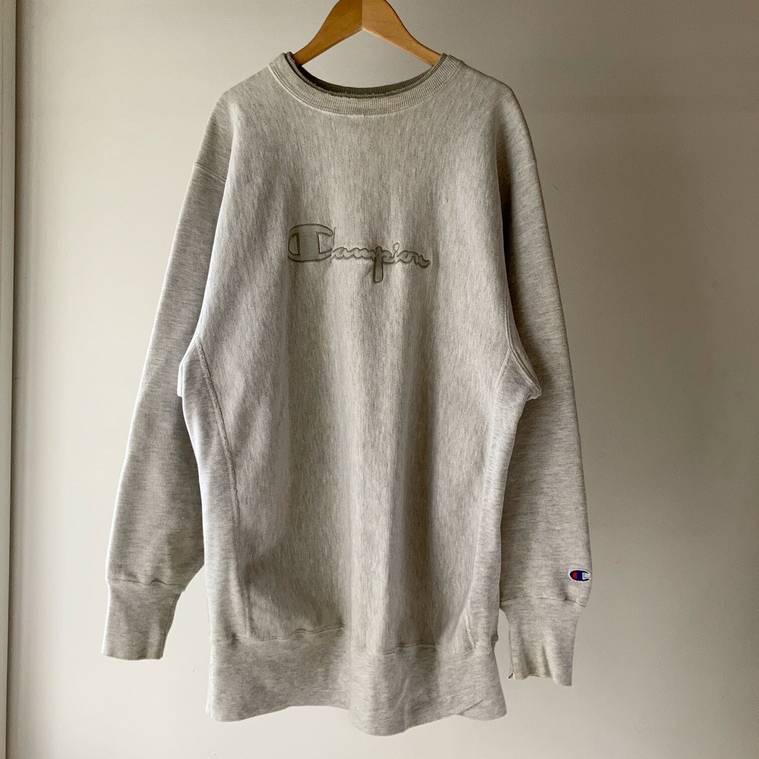 90's Reverse Weave グレー刺繍スウェット【0205A17】