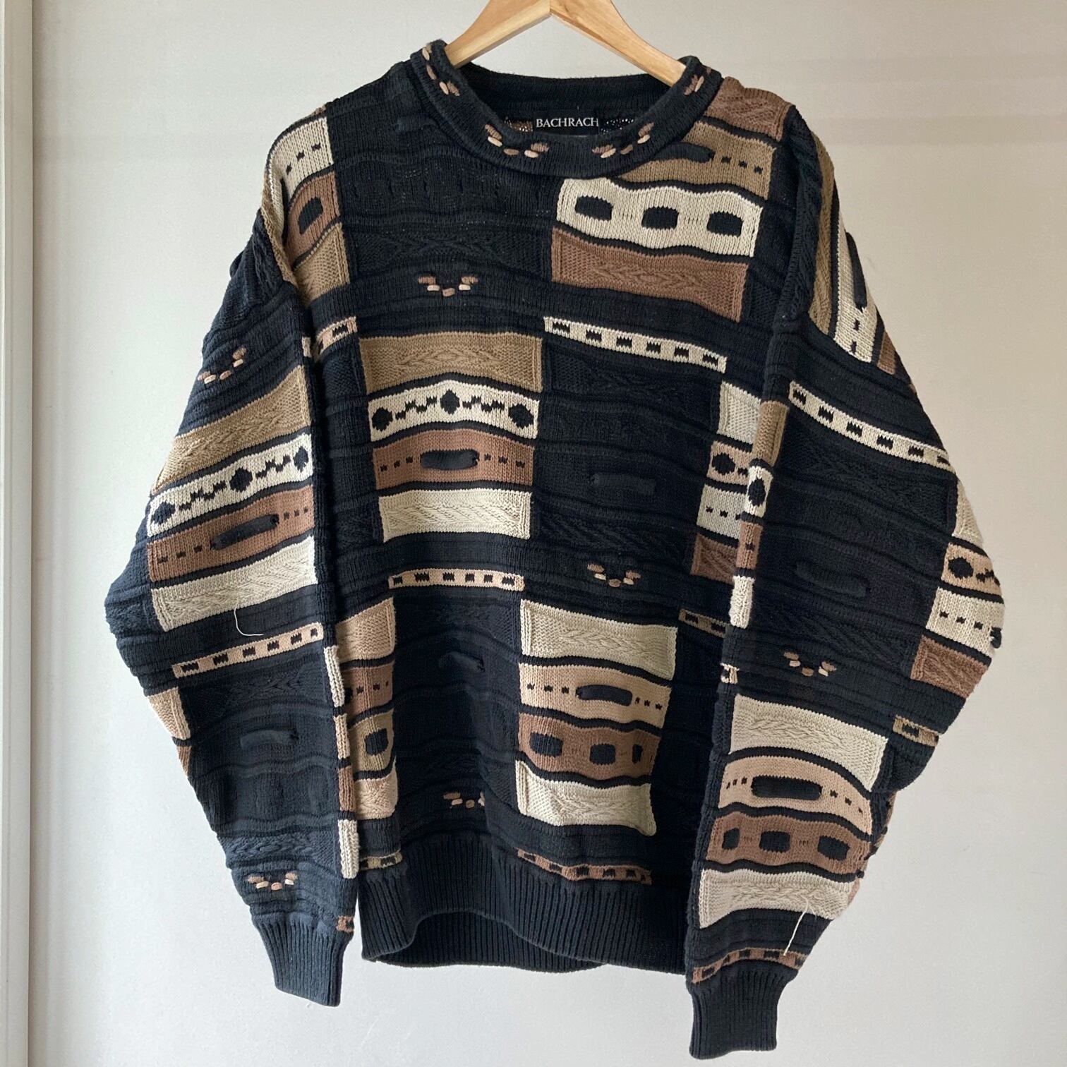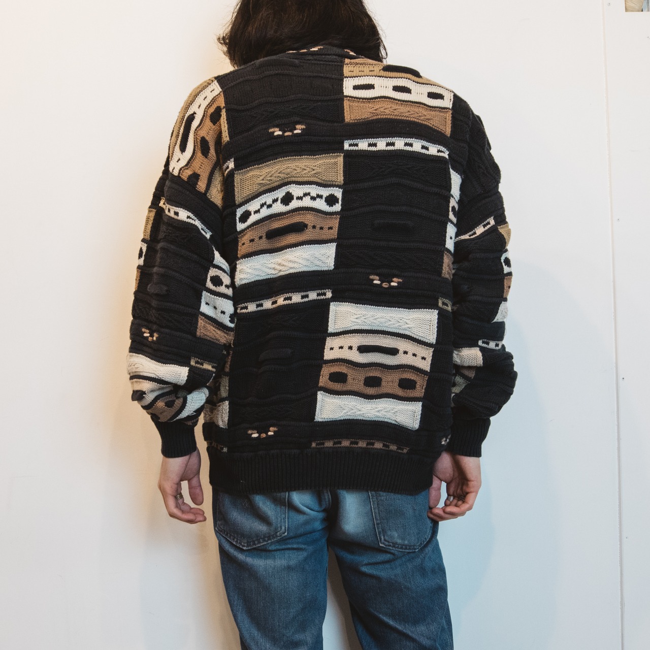 3Dニットセーター ブラック×ブラウン 【0205A24】