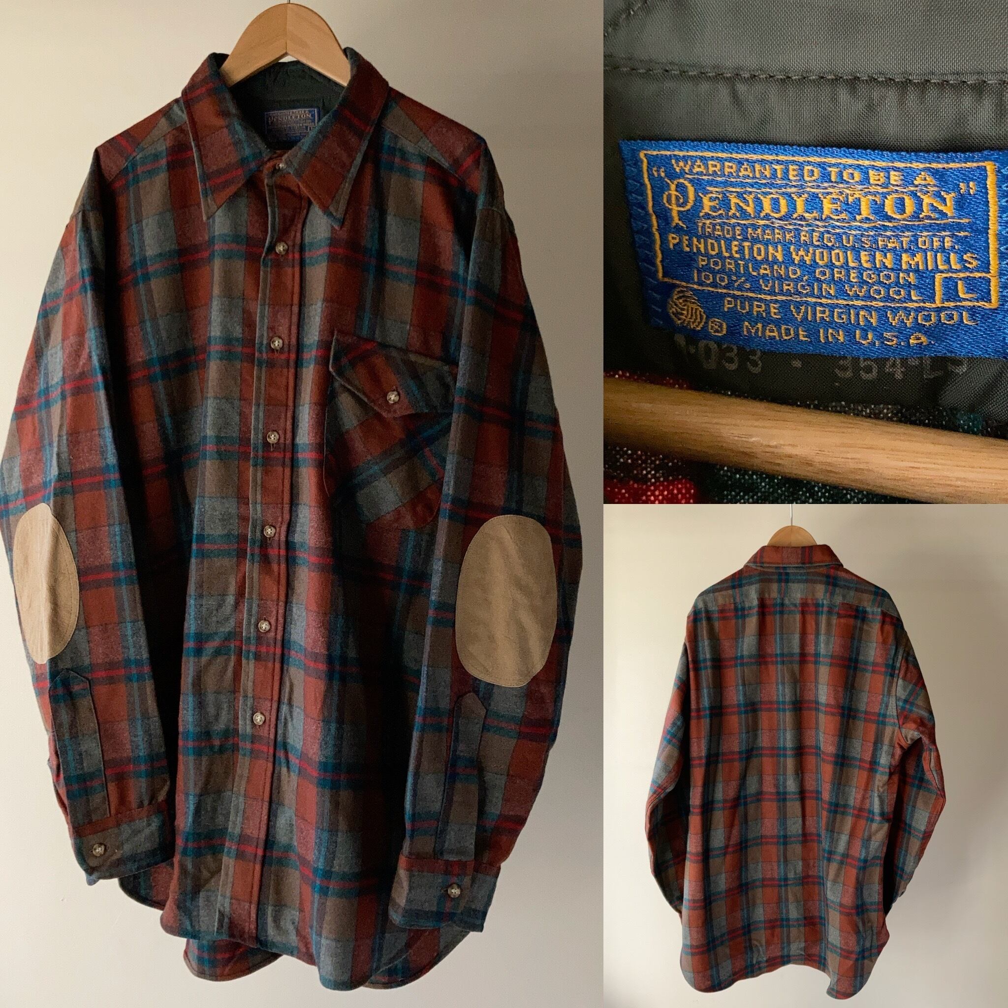 70's チェックウールシャツ ブラウン エルボーパッチ付き【0205A33】