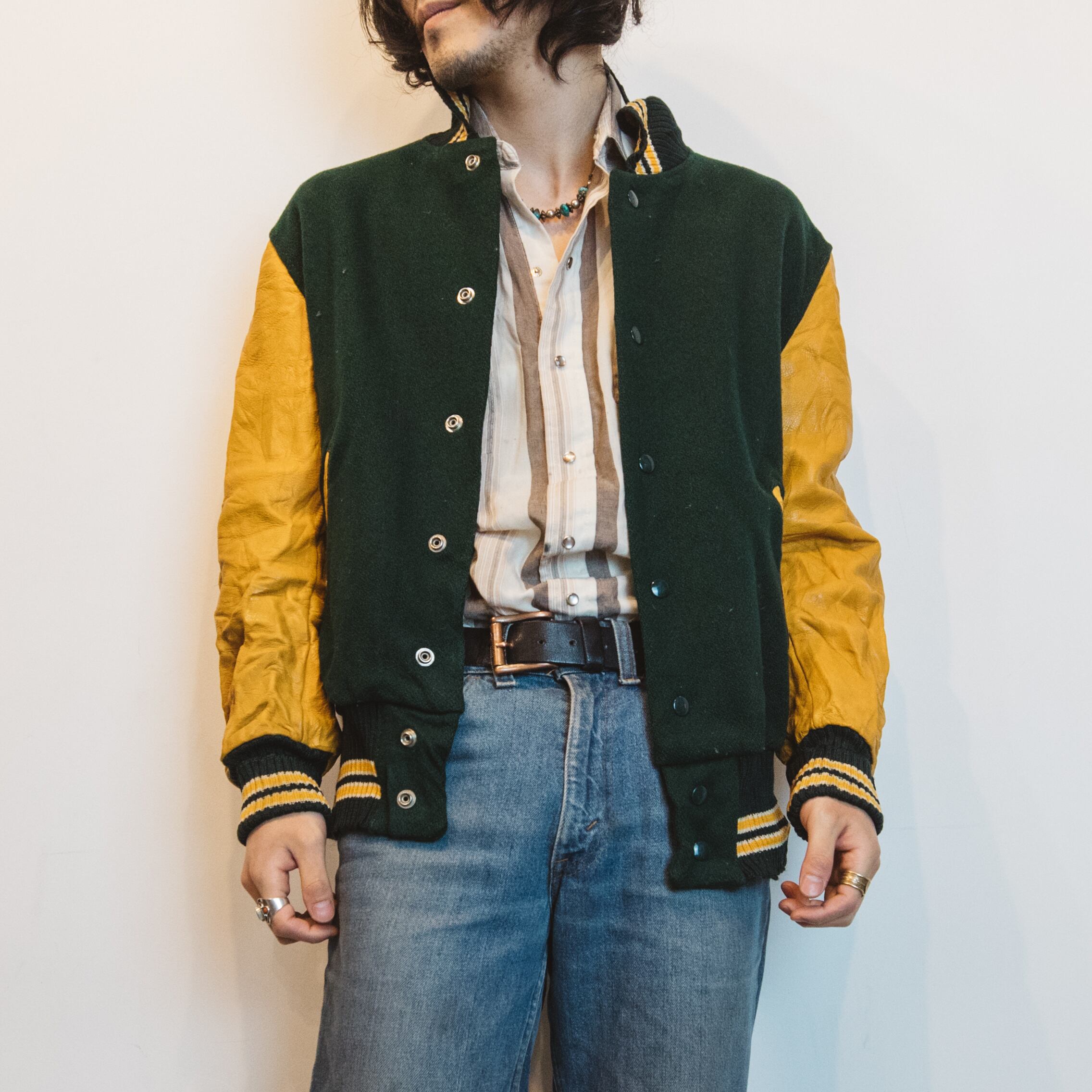 1960's~ ショールカラー コンビスタジャン グリーン×イエロー【0205A45】