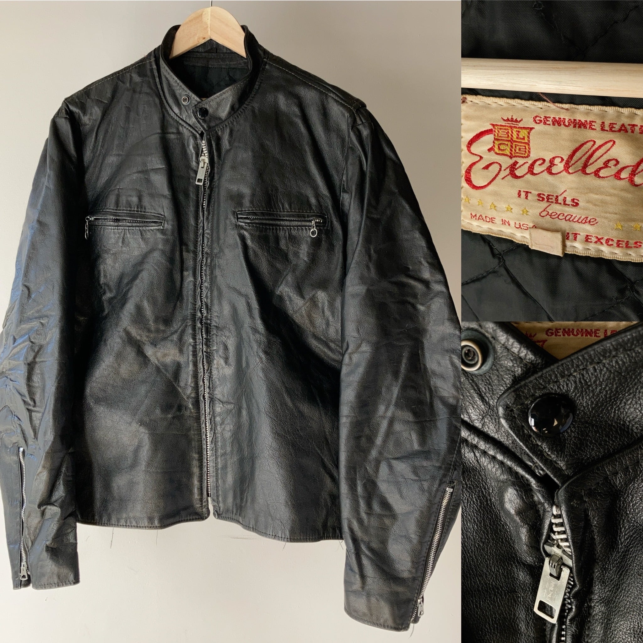 70's~ Excelled シングルライダースジャケット ブラック【0205A59】