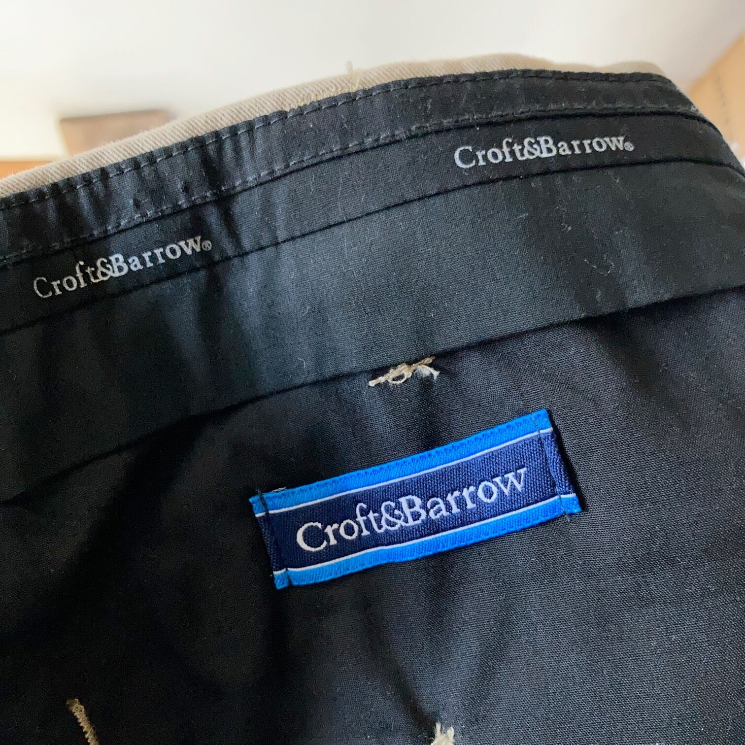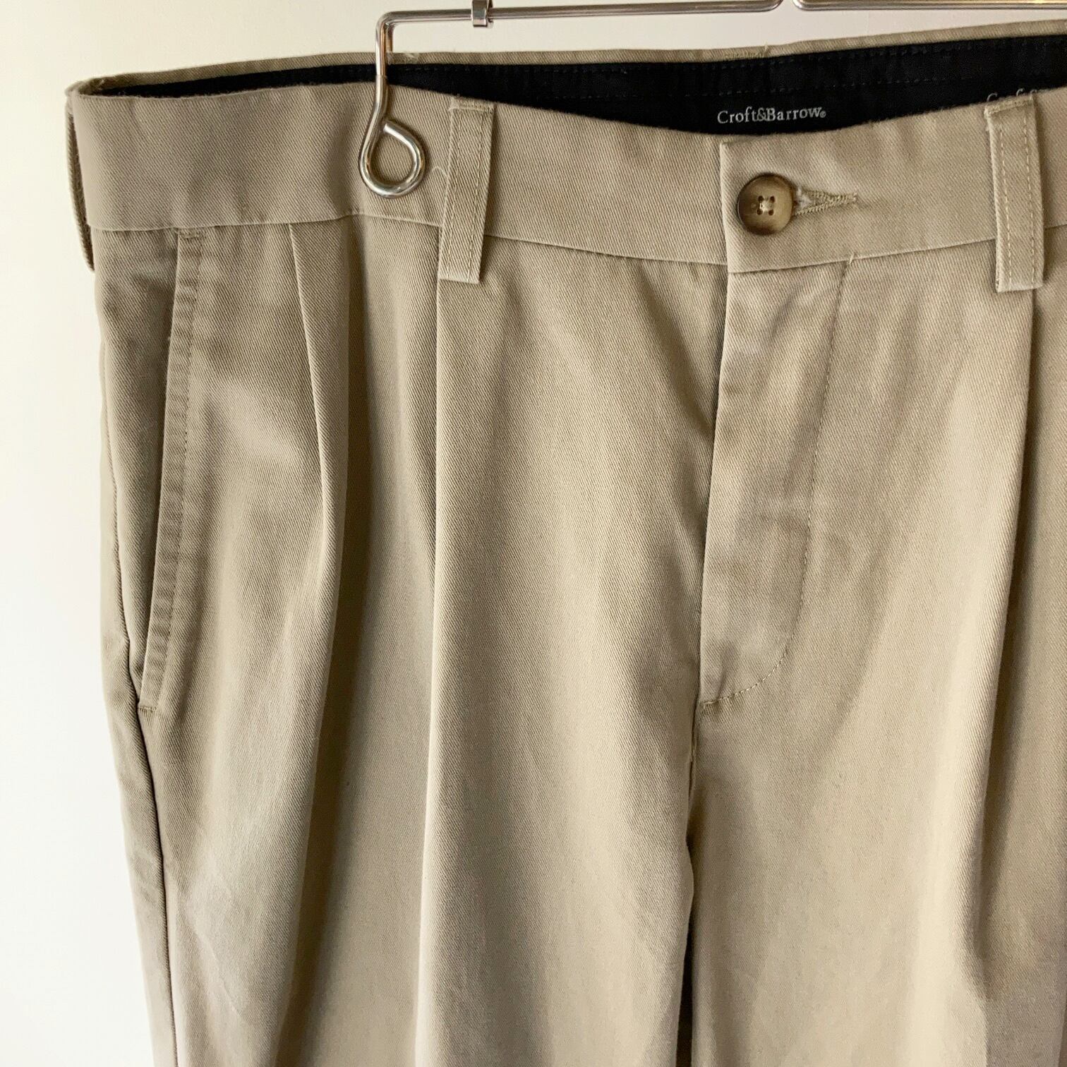 2タック入りのベージュチノパン。