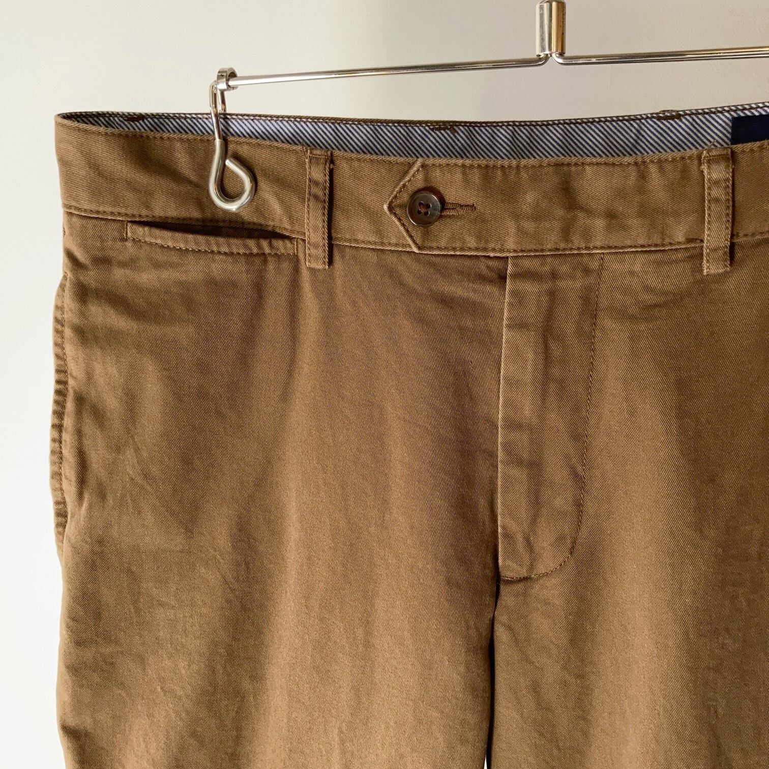 シンプルでオールシーズン使えるブラウンカラーのコットンチノパン。